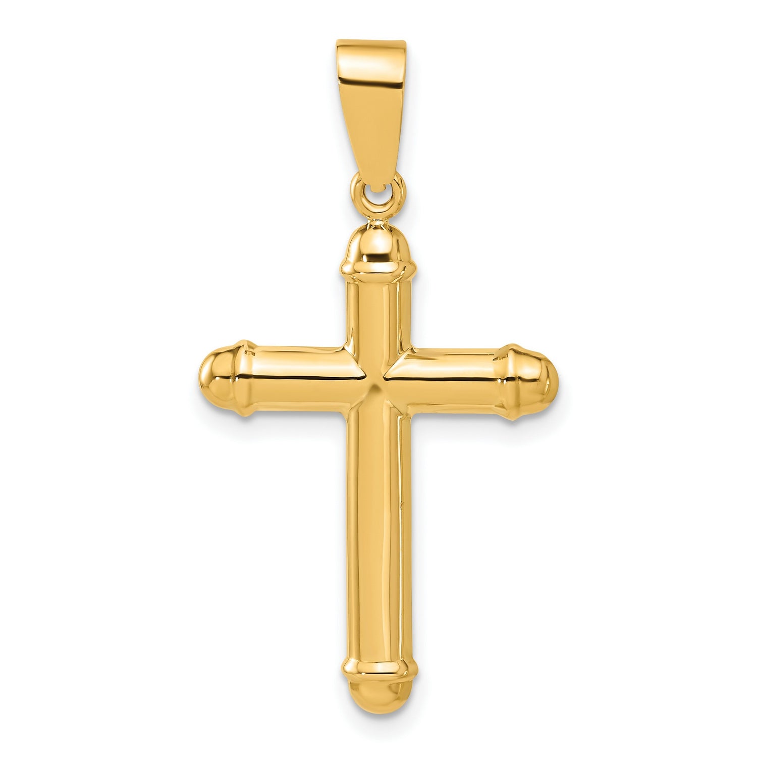 14k Yellow Gold Cross Pendant with Mirror Finish and Beveled Edge Design