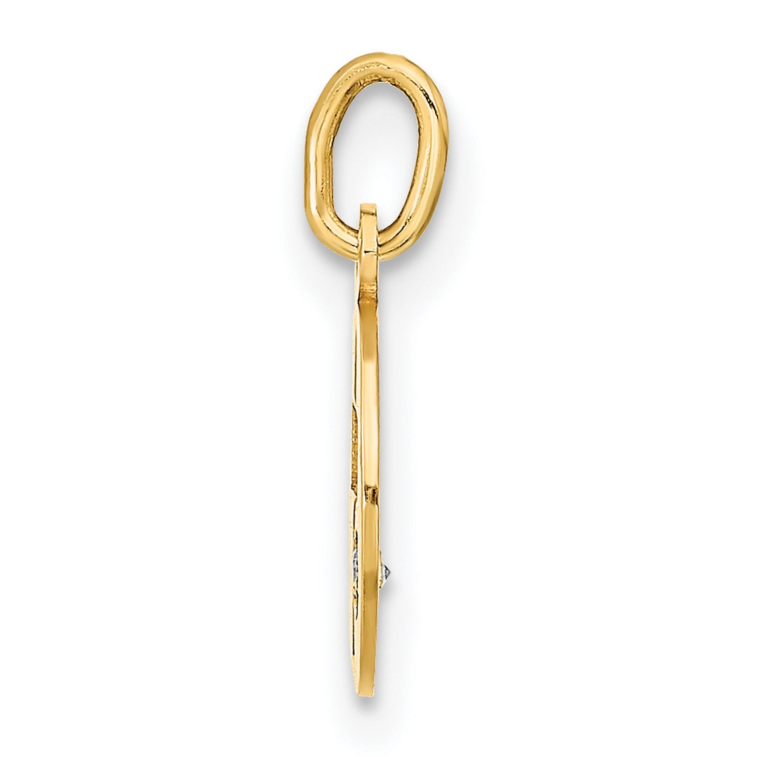 Polished CZ Circle Cross Charm Pendant in Real 14k Yellow Gold