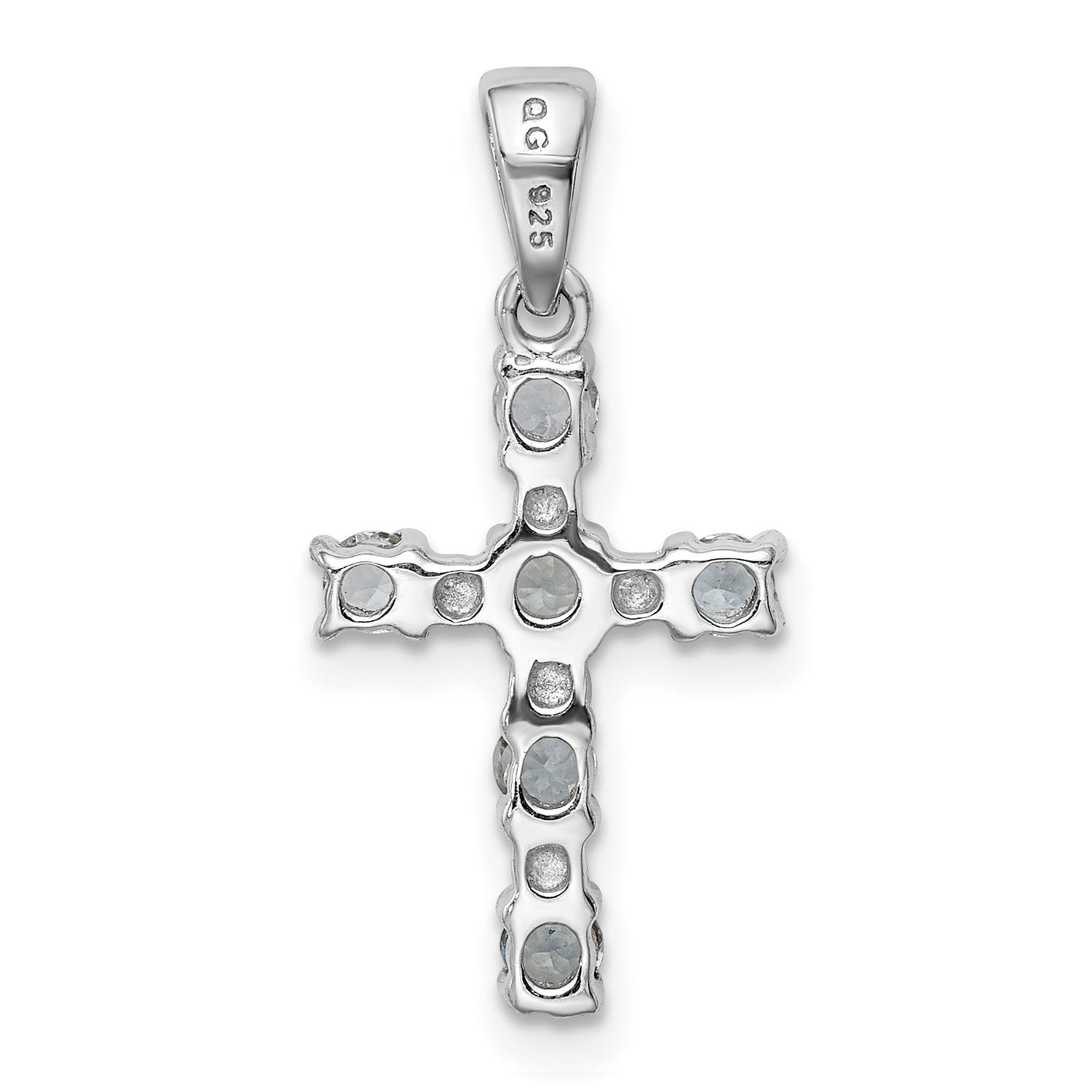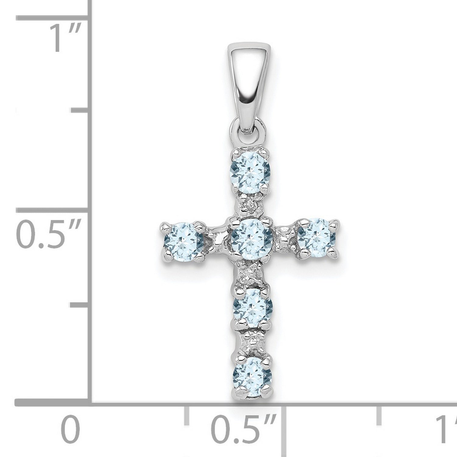 Aquamarine and Diamond Cross 17x12mm 0.33ct Charm Pendant in Real 925 Sterling Silver