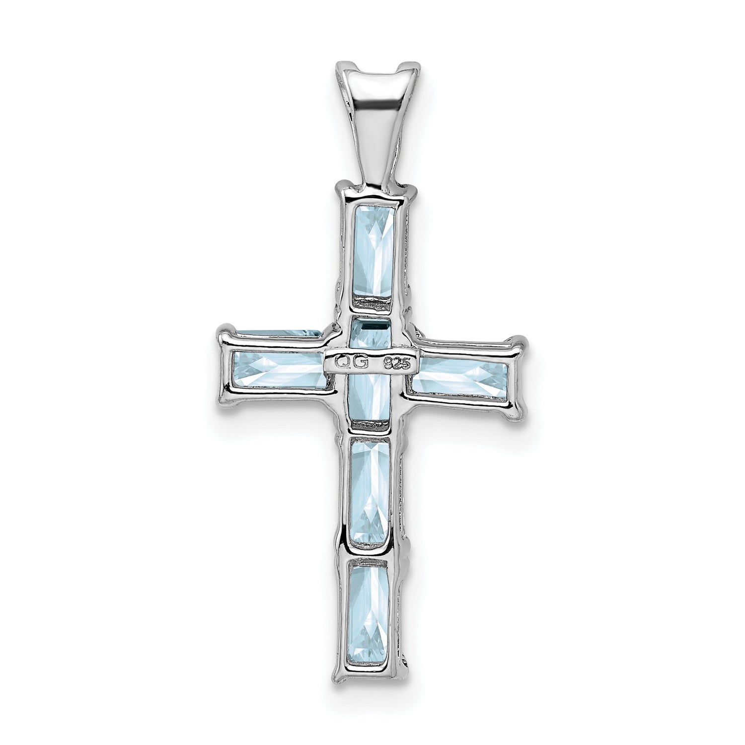 Aquamarine Cross Charm Pendant in Real 925 Sterling Silver