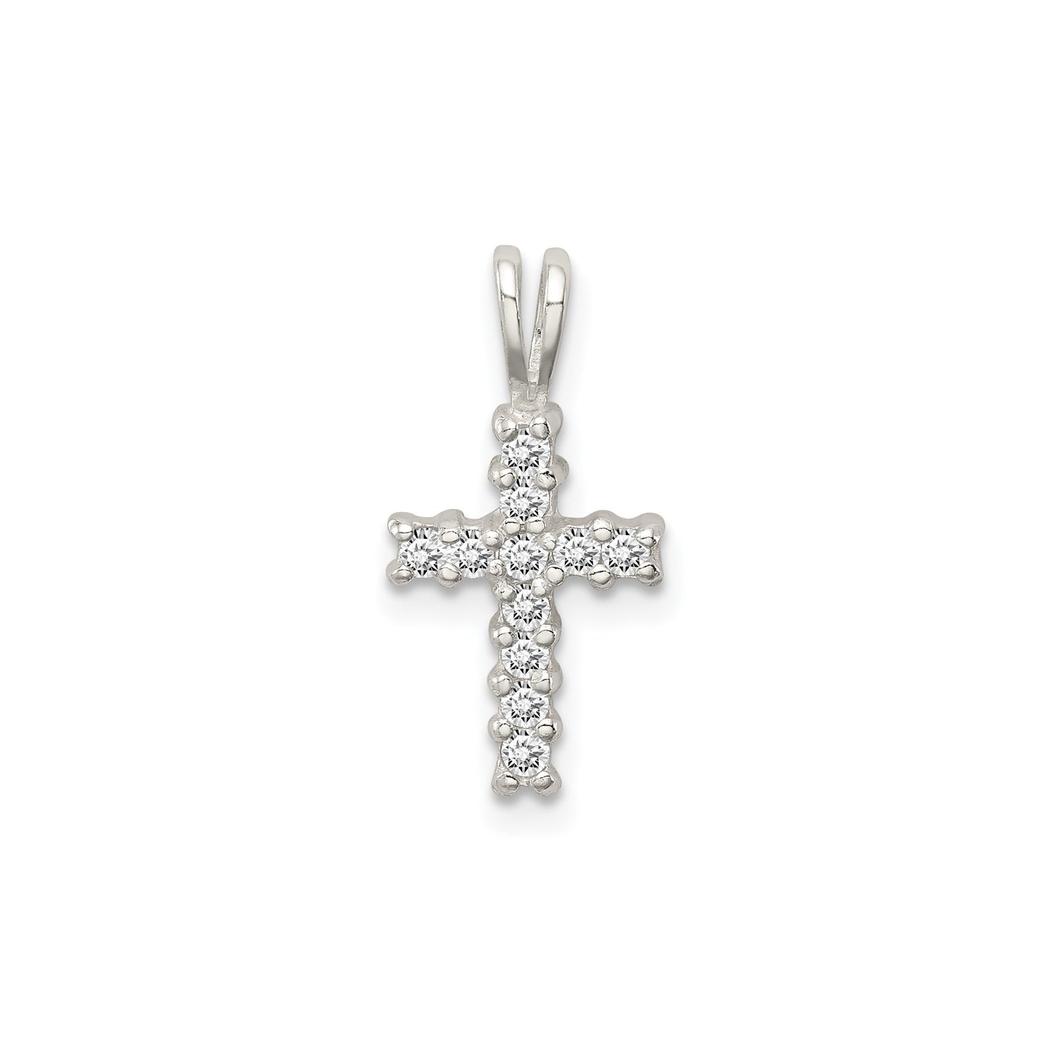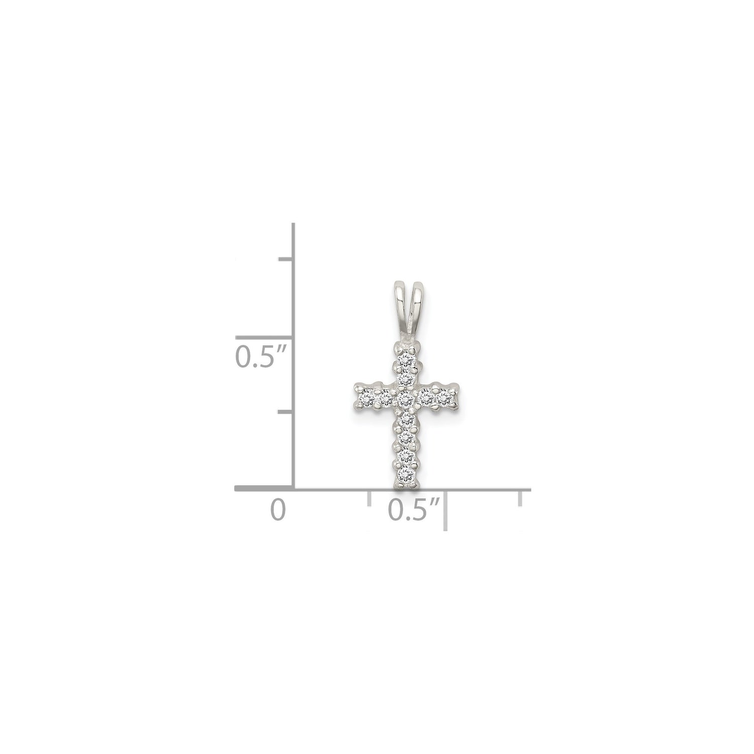 Sterling Silver Cross Pendant with Cubic Zirconia and Round-Cut Diamond Accents