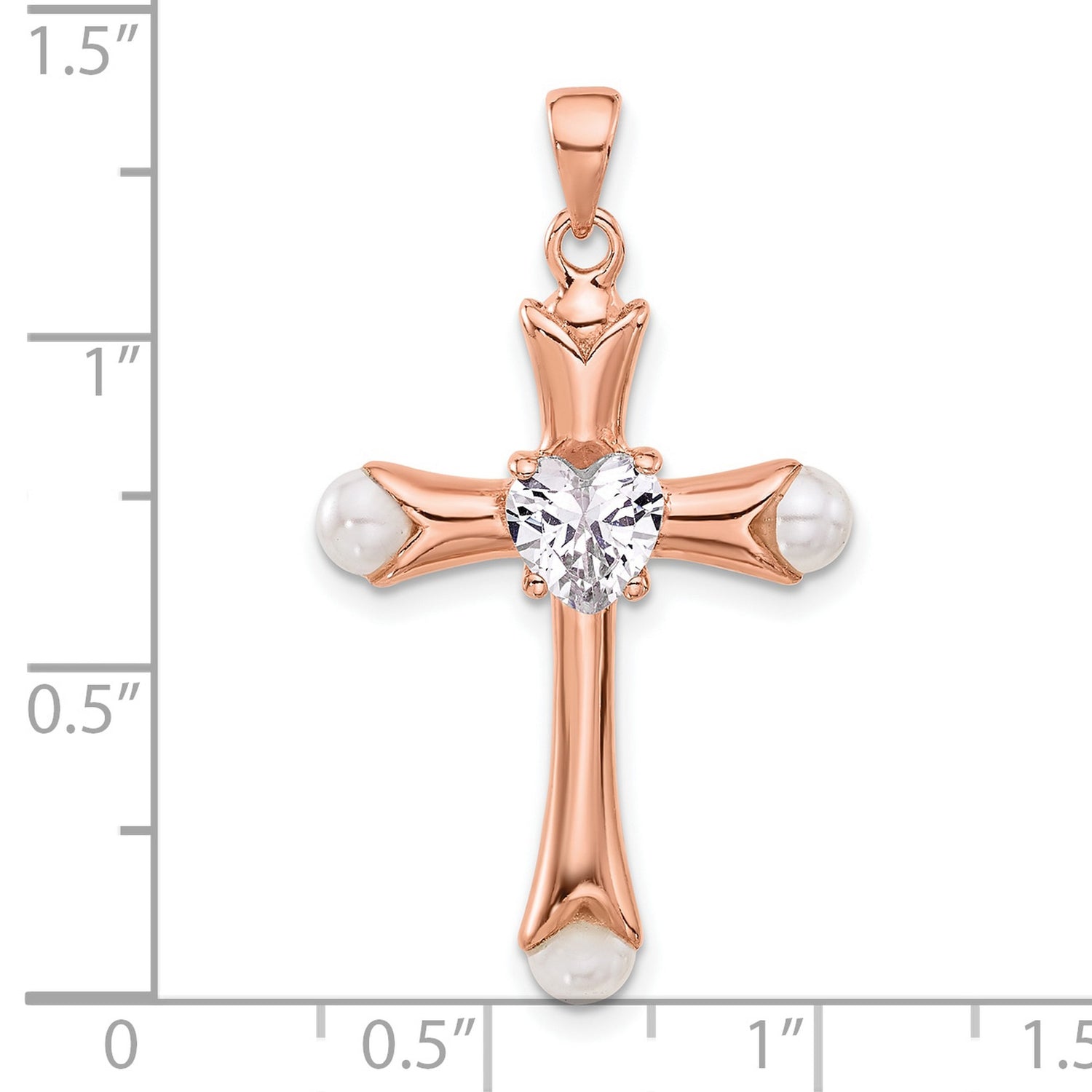 - Exquisite Design: This pendant features a delicate combination of a heart-shaped cubic zirconia (CZ) and a synthetic pearl, beautifully crafted in a cross charm design.