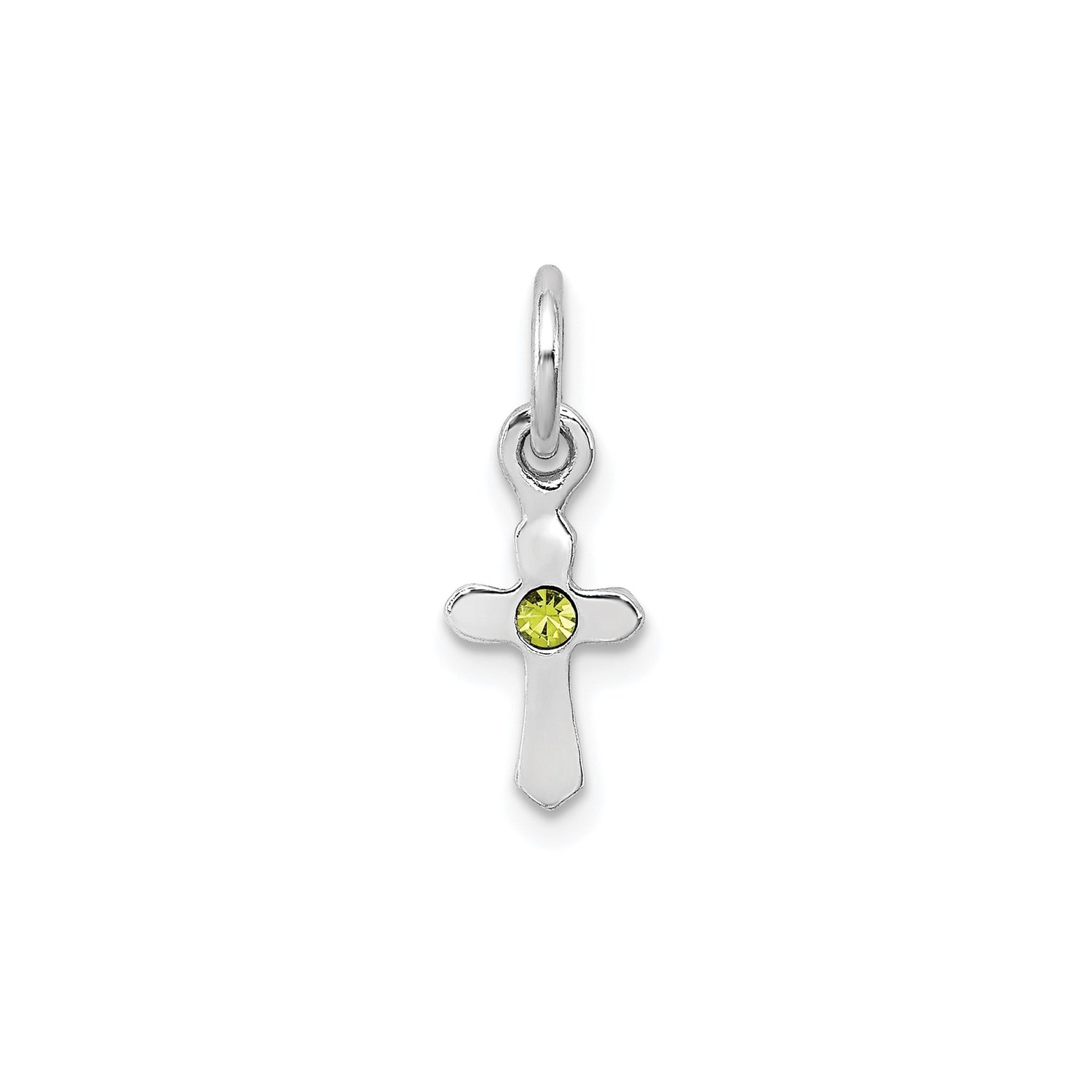 Sterling Silver Cross Pendant with Peridot, Modern Religious Charm for Men and Women