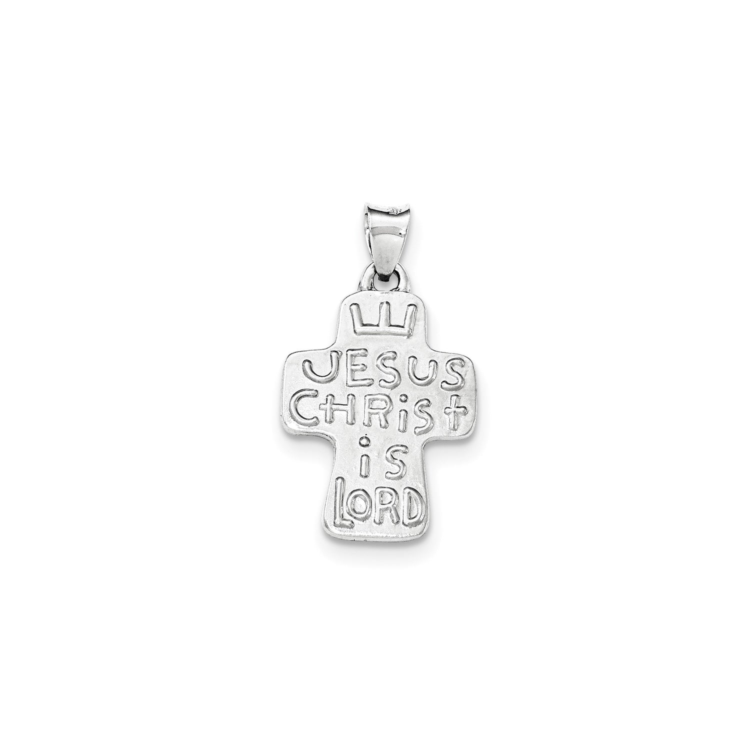 Sterling Silver Cross Pendant with Textured Finish and Crown Engraving , Christian Jewelry for Men and Women