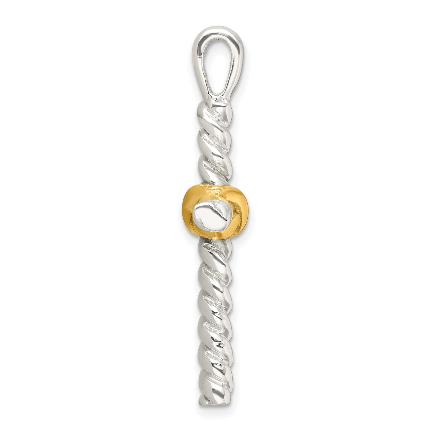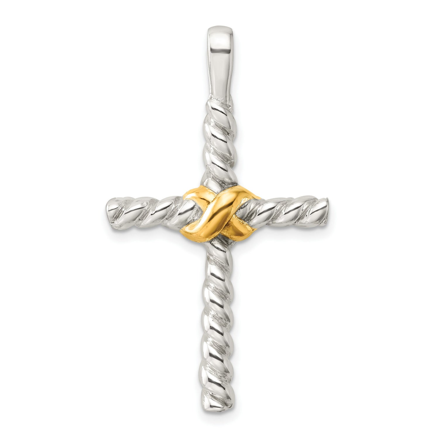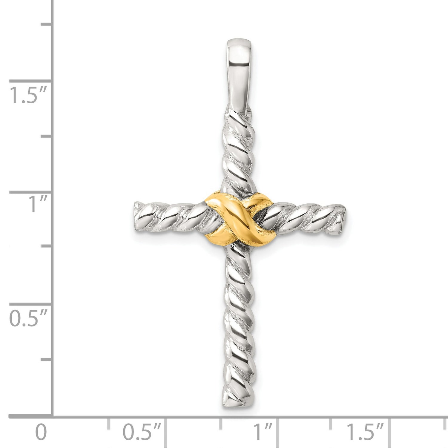 Sterling Silver Cross Pendant with Yellow Gold Accent, Rope Texture and Layered Design