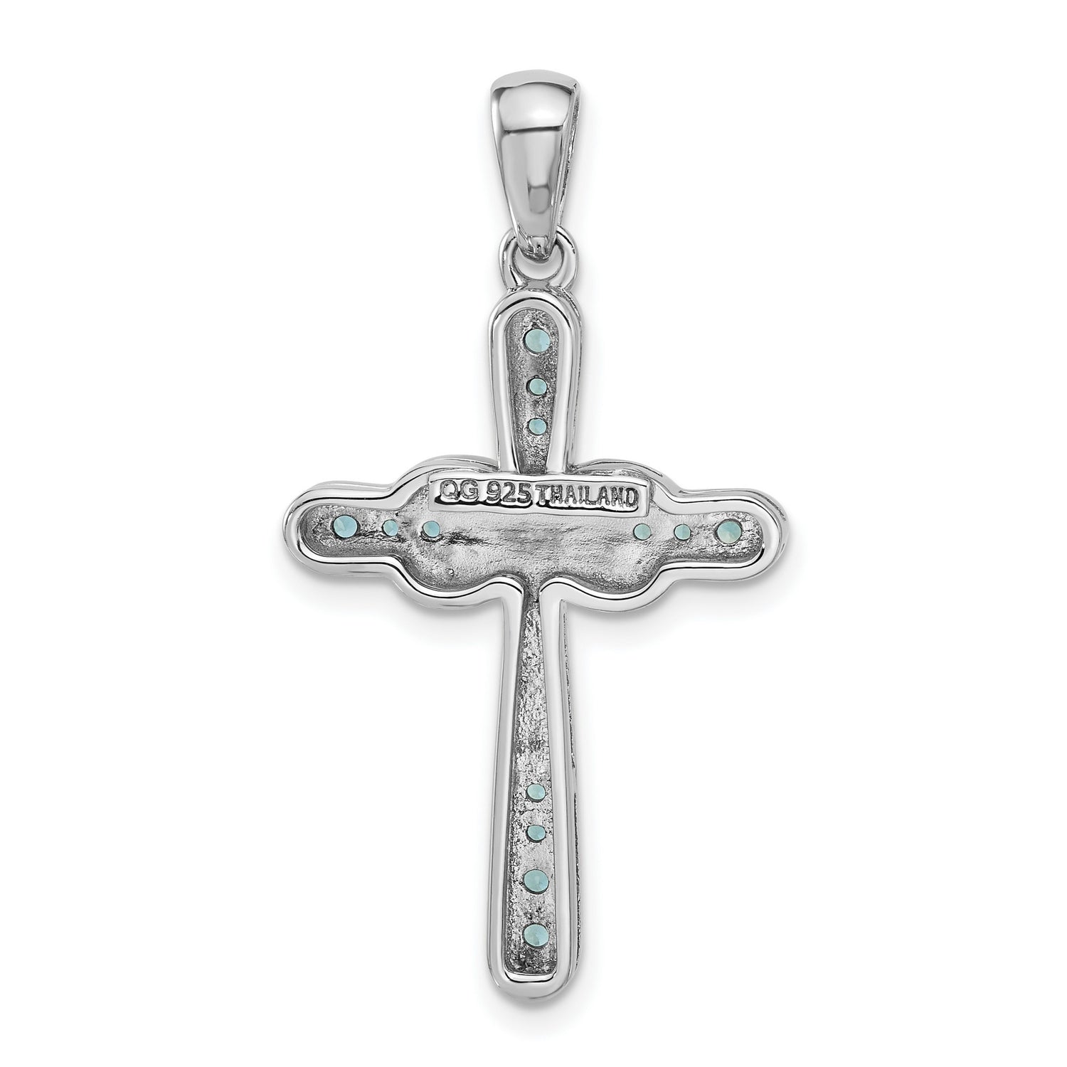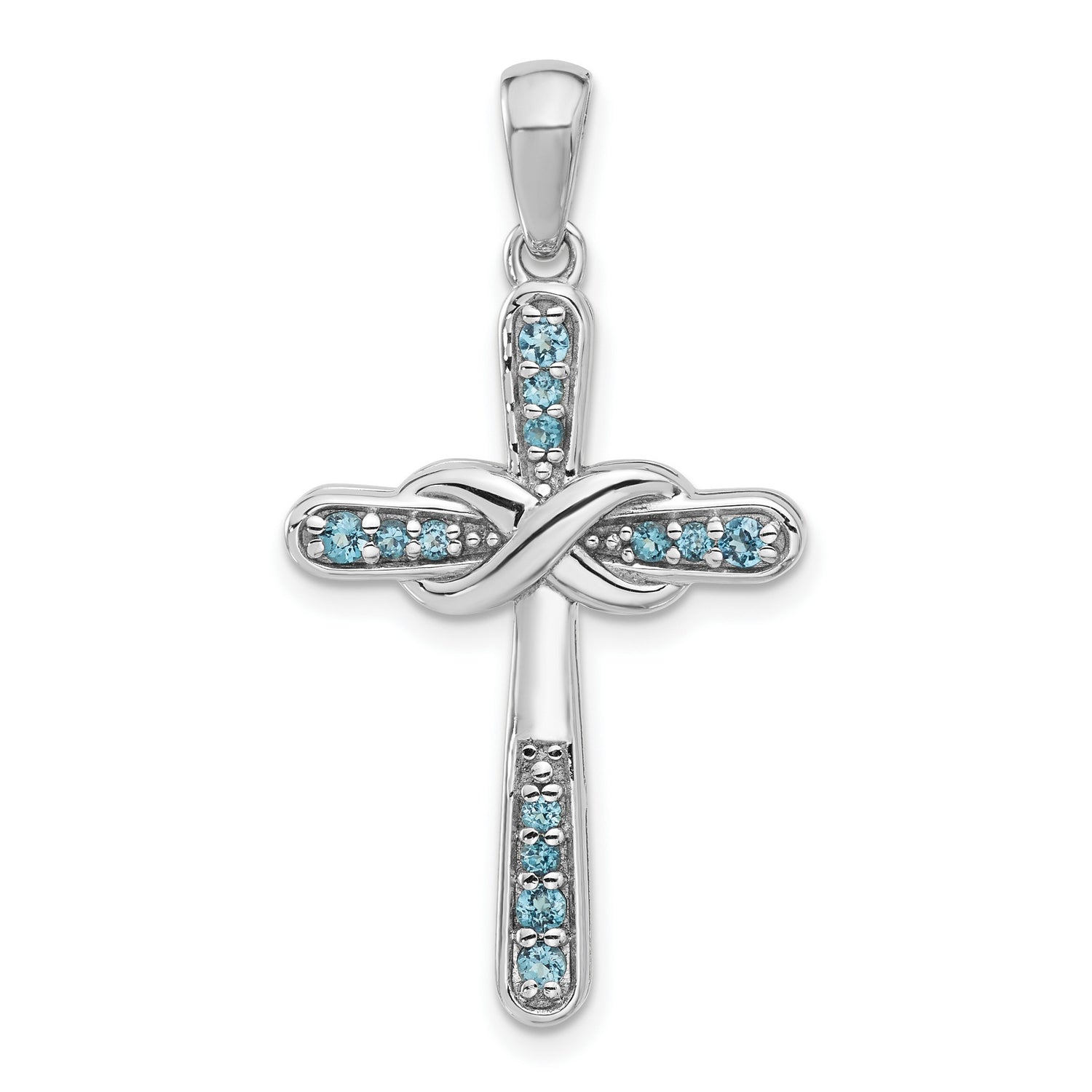 Sterling Silver Infinity Cross Pendant with London Blue Topaz and Aquamarine Charm