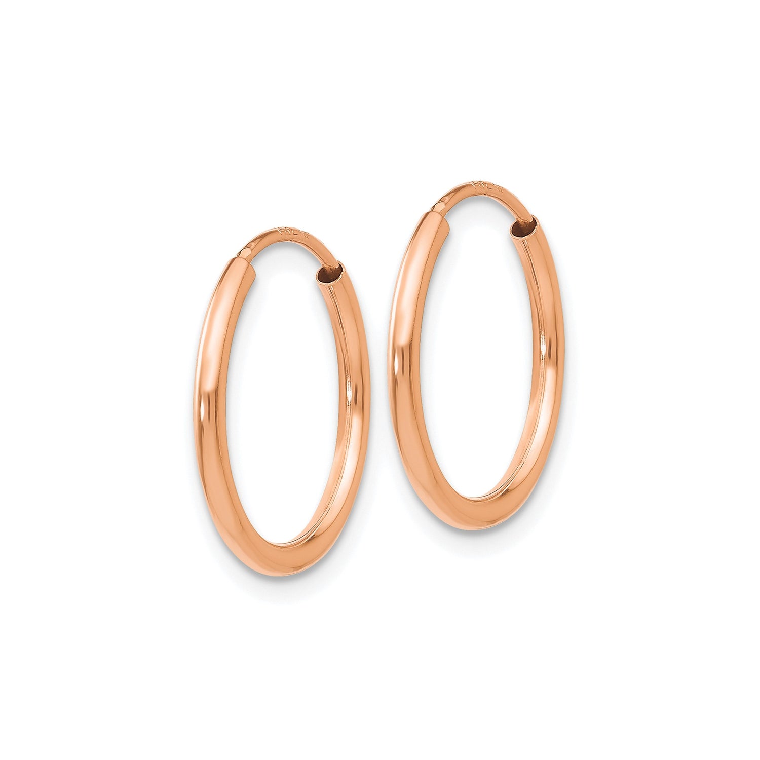10k Rose Gold Hoop Earrings, Classic Endless Tube Design with Polished Finish for Women