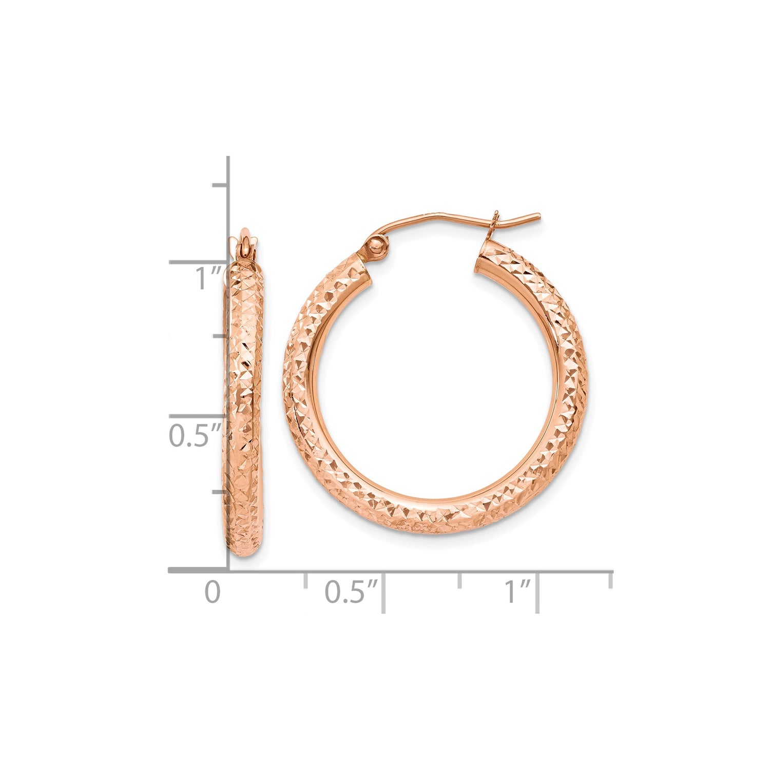 10k Rose Gold Hoop Earrings, Diamond Cut Textured Finish, Lightweight Classic Style