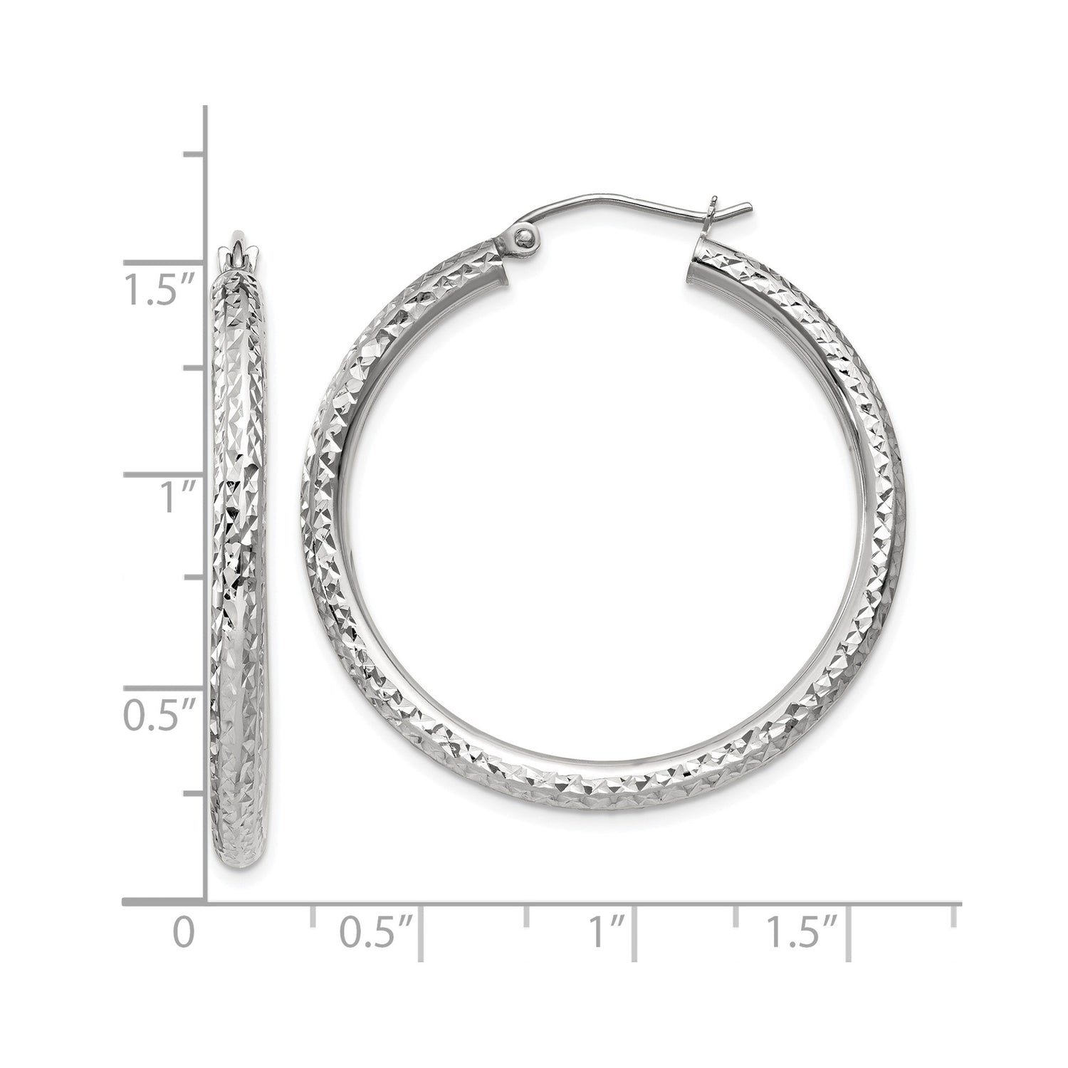 10k White Gold Hoop Earrings, Diamond Cut Textured Design, Lightweight Everyday Jewelry