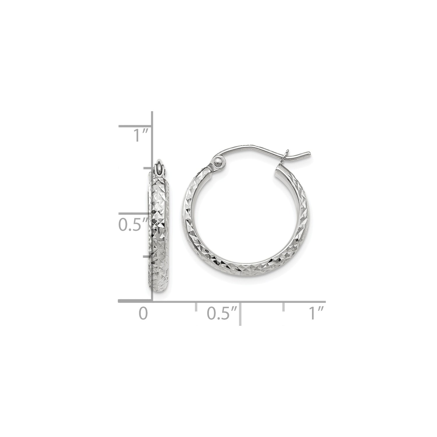 10k White Gold Hoop Earrings, Diamond Cut Textured Finish, Lightweight Classic Design