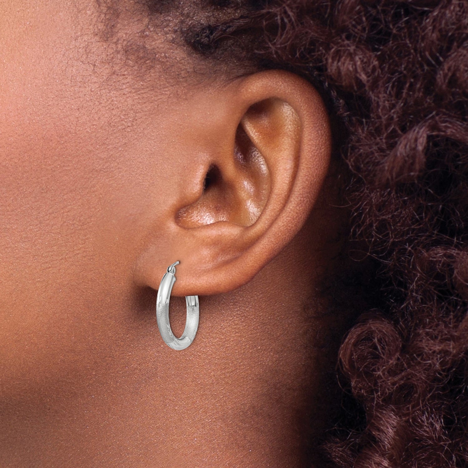 10k White Gold Hoop Earrings, Satin and Polished Finish with Leaf Pattern
