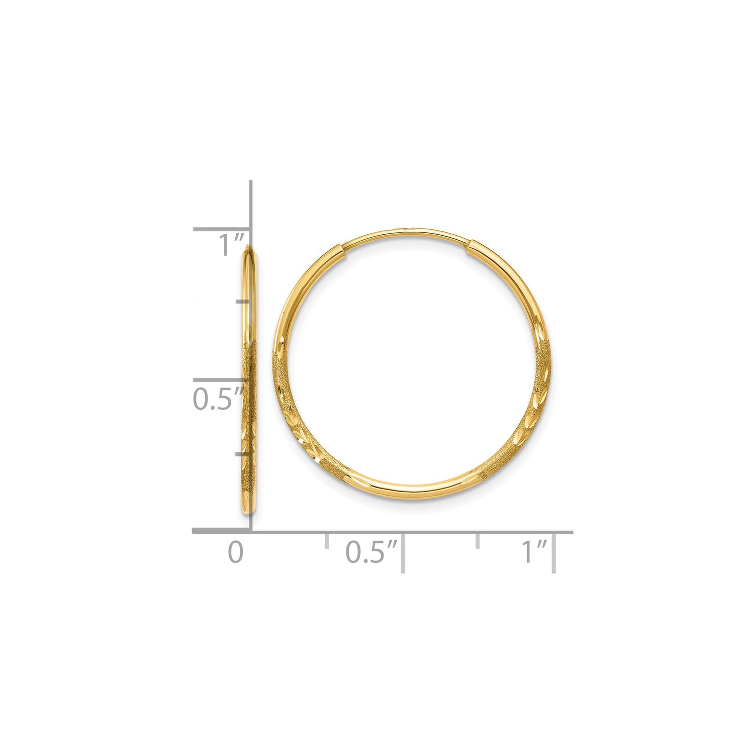 Expertly Crafted In A Lightweight Endless Hoop Earring Design, These Ladies Earrings Combine A Polished Finish With Refined Texture For A Versatile Finish. Whether You're Stepping Out In Casual Gold Hoops Or Dressing Up With Formal Earrings, These Fashion Hoop Earrings Complement A Wide Range Of Outfits. The Shimmering Diamond-Cut Gold Hoops Catch The Light From Every Angle Without Feeling Heavy Or Overpowering.