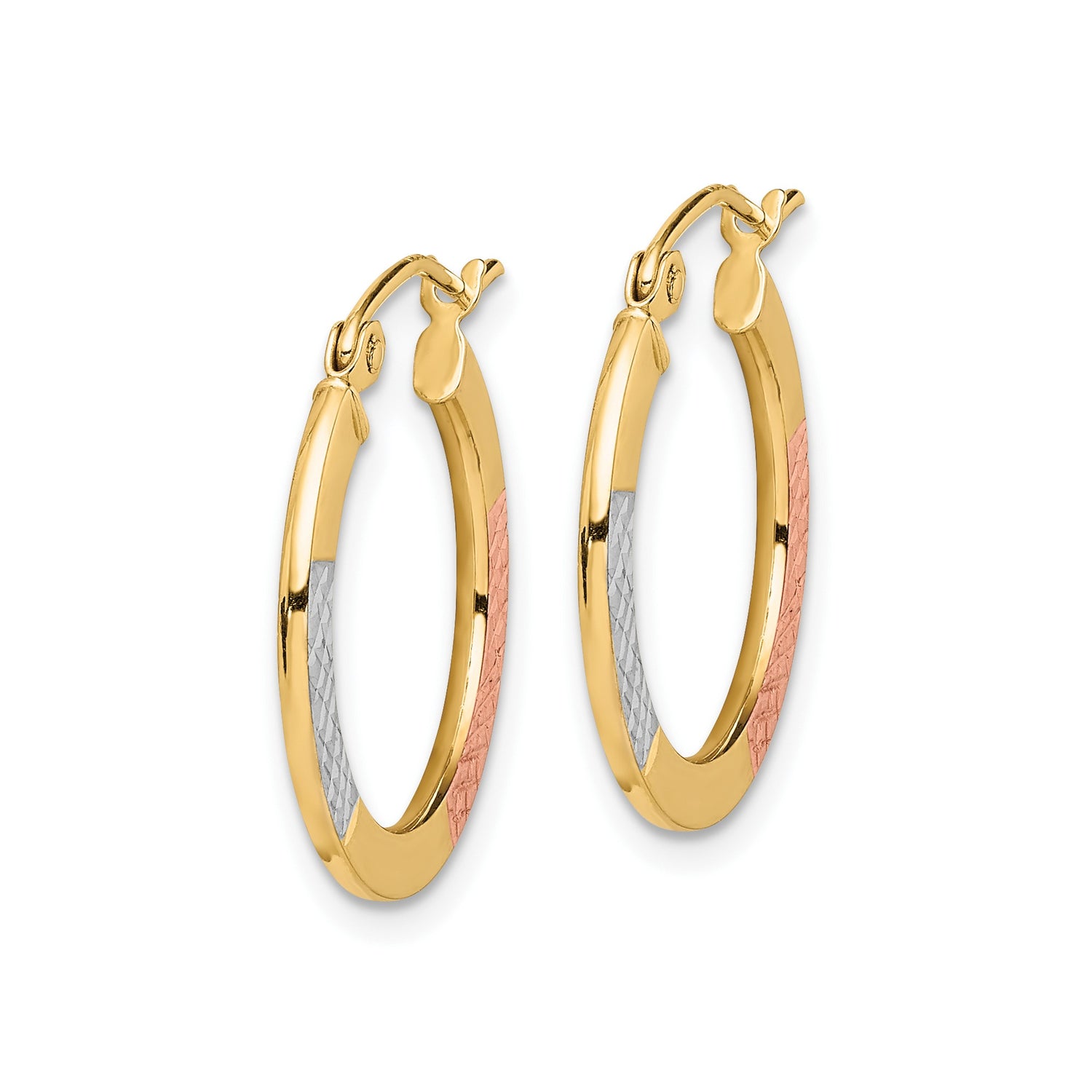 10k Yellow Gold Hoop Earrings, Diamond Cut Tri-Color with Rose Gold and Rhodium Accents