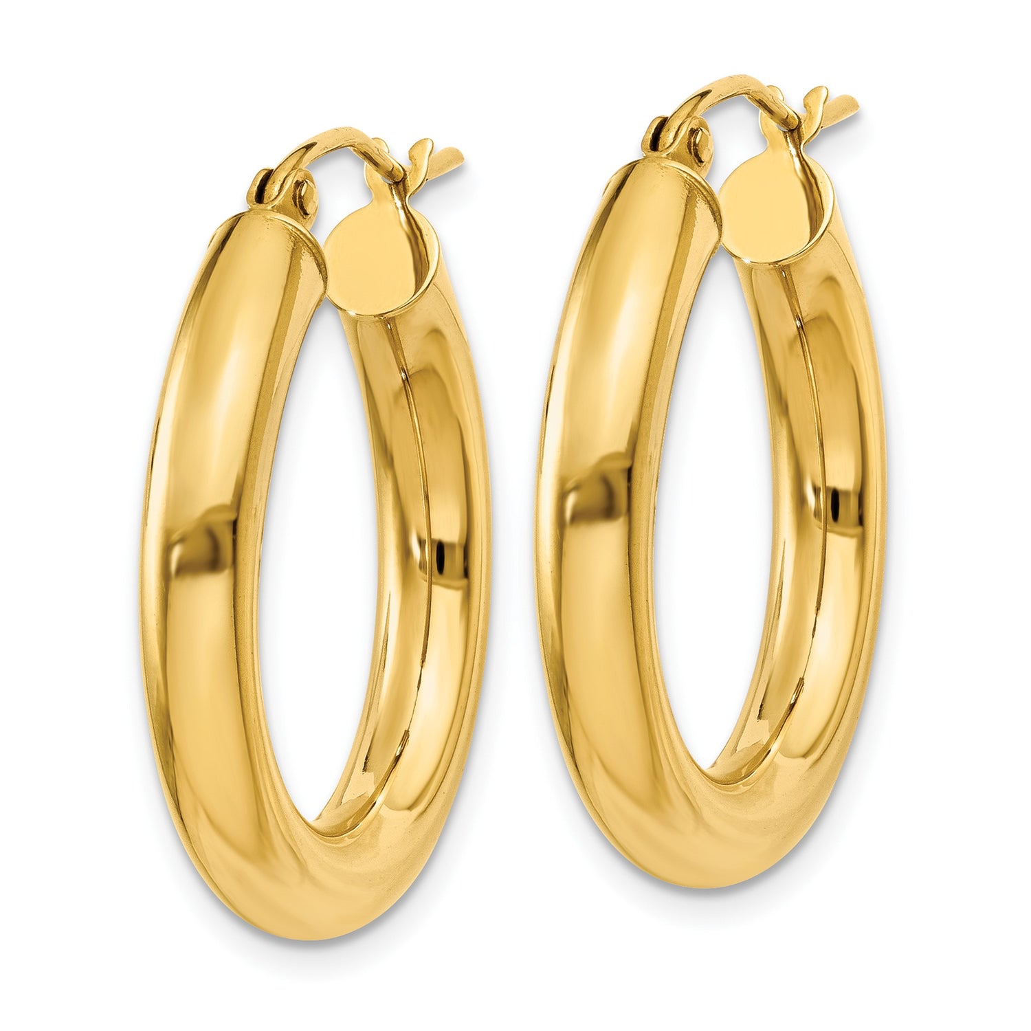 The rounded tube style creates modern visual interest, while the high-polish yellow gold finish ensures they remain eye-catching but refined. Their basic round gold hoops construction is perfect for fans of minimalist earrings who seek enduring style. Ladies gold earrings like these deliver an elegant design with everyday practicality, making them a smart addition to any jewelry rotation.