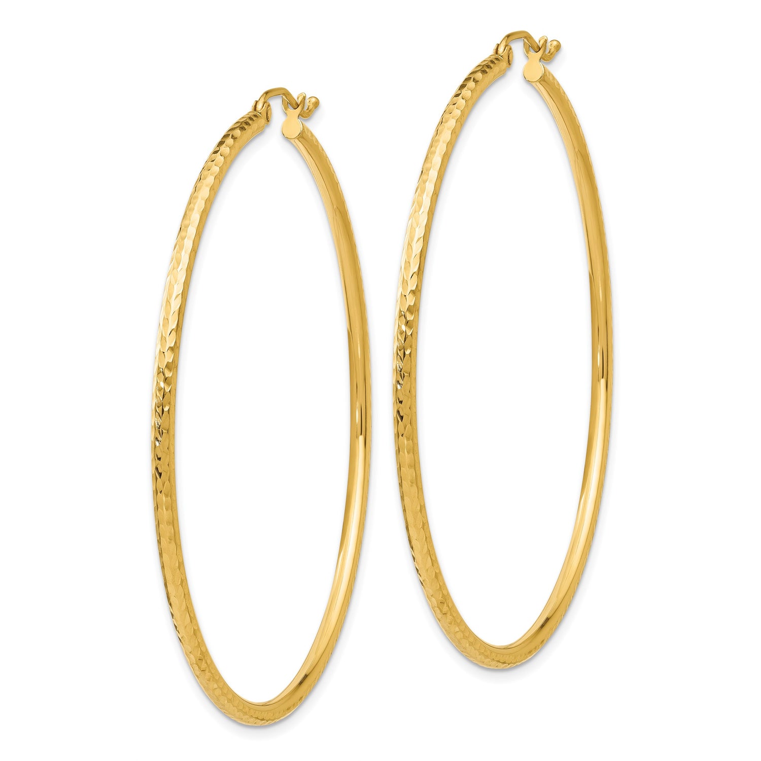 The bold but lightweight construction ensures these fashion earrings offer noticeable presence without sacrificing comfort. Polished hammered gold hoops like these offer a smooth, sleek finish, with a broad, rounded shape that flatters a range of face shapes and outfits. Whether you're dressing up for a special occasion or accentuating everyday looks, these round yellow gold earrings make a refined statement.
