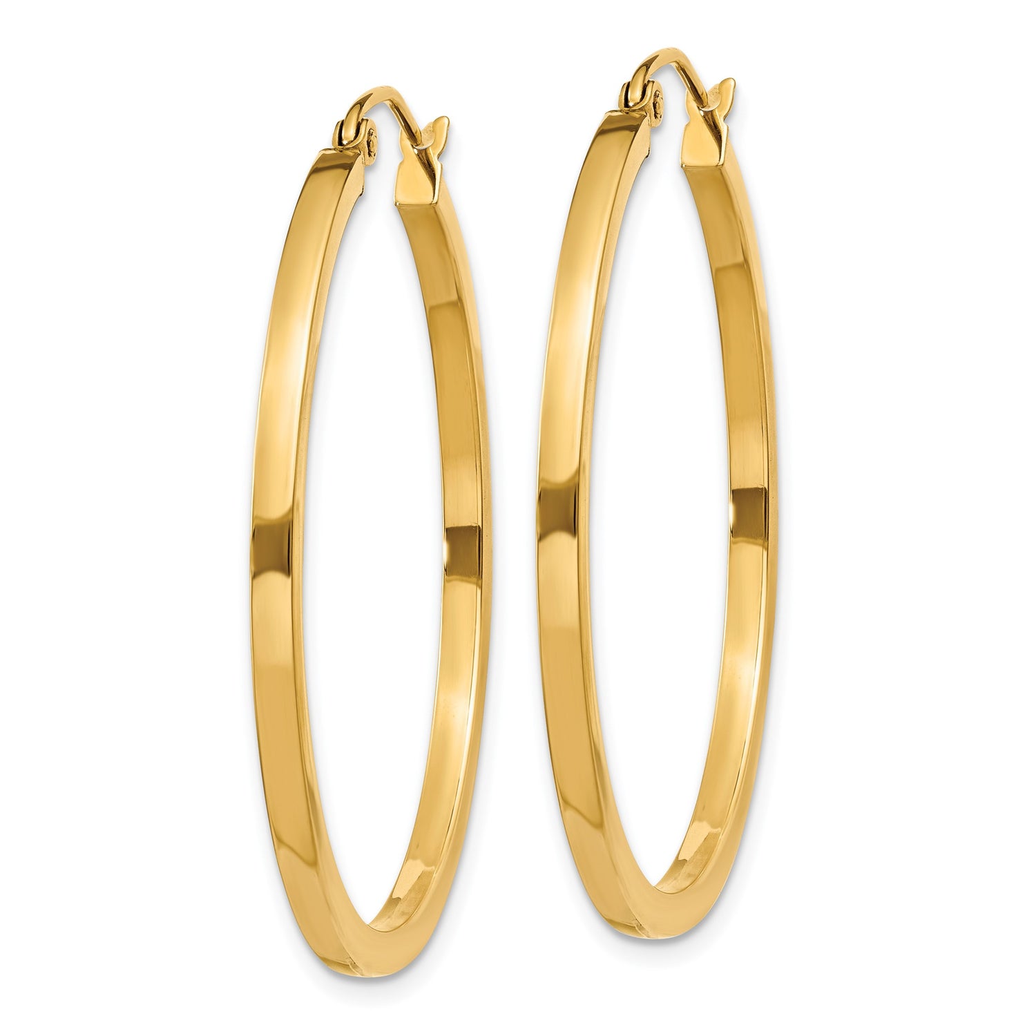 10k Yellow Gold Hoop Earrings, Medium Polished Hoops with Smooth Finish and Latch Back Closure