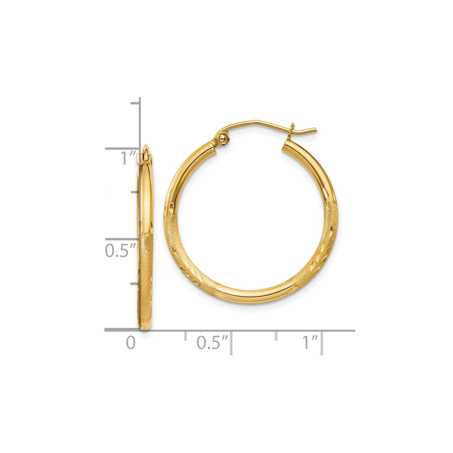 Add Effortless Shine to Your Look with These 10k Yellow Gold Hoops That Blend Subtle Texture and Sleek Style. Crafted to Complement Any Outfit, These Lightweight Round Gold Hoops Showcase a Polished Finish Alongside Delicate Textured Detailing. The Diamond-Cut Surface Gives These Classic Hoops a Refined Edge, Reflecting Light and Creating a Touch of Sparkle Without Overpowering Your Ensemble.