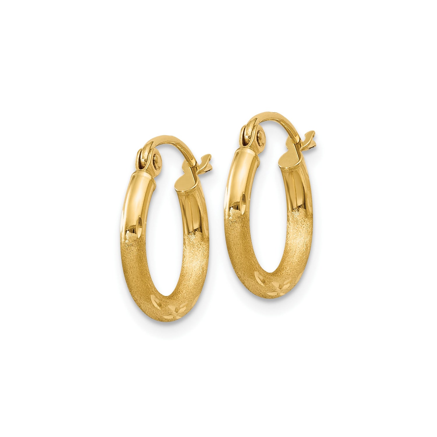 10k Yellow Gold Hoop Earrings, Polished and Textured with Diamond-Cut Detail, Lightweight Classic Style