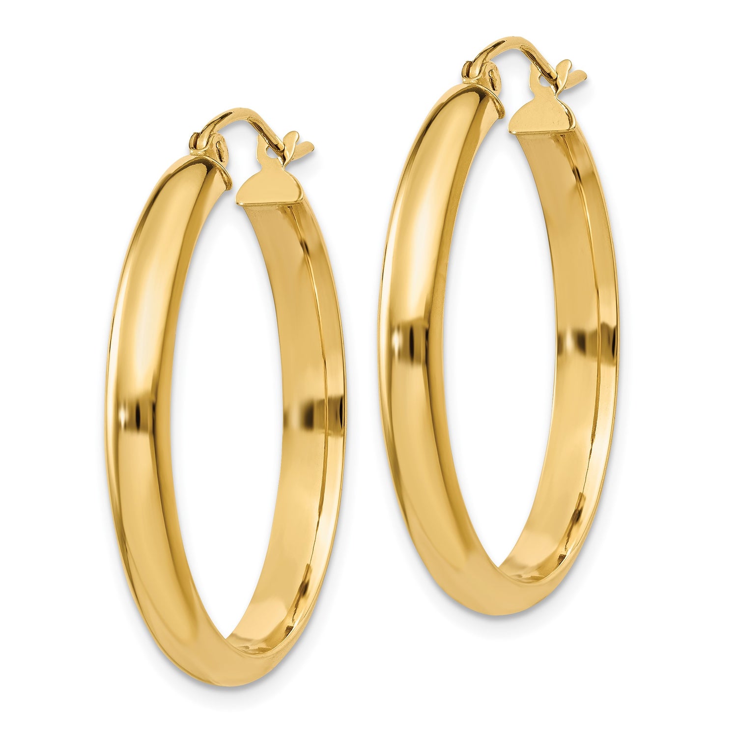 10k Yellow Gold Hoop Earrings, Polished Finish, Classic Round Design, Latch Back Closure