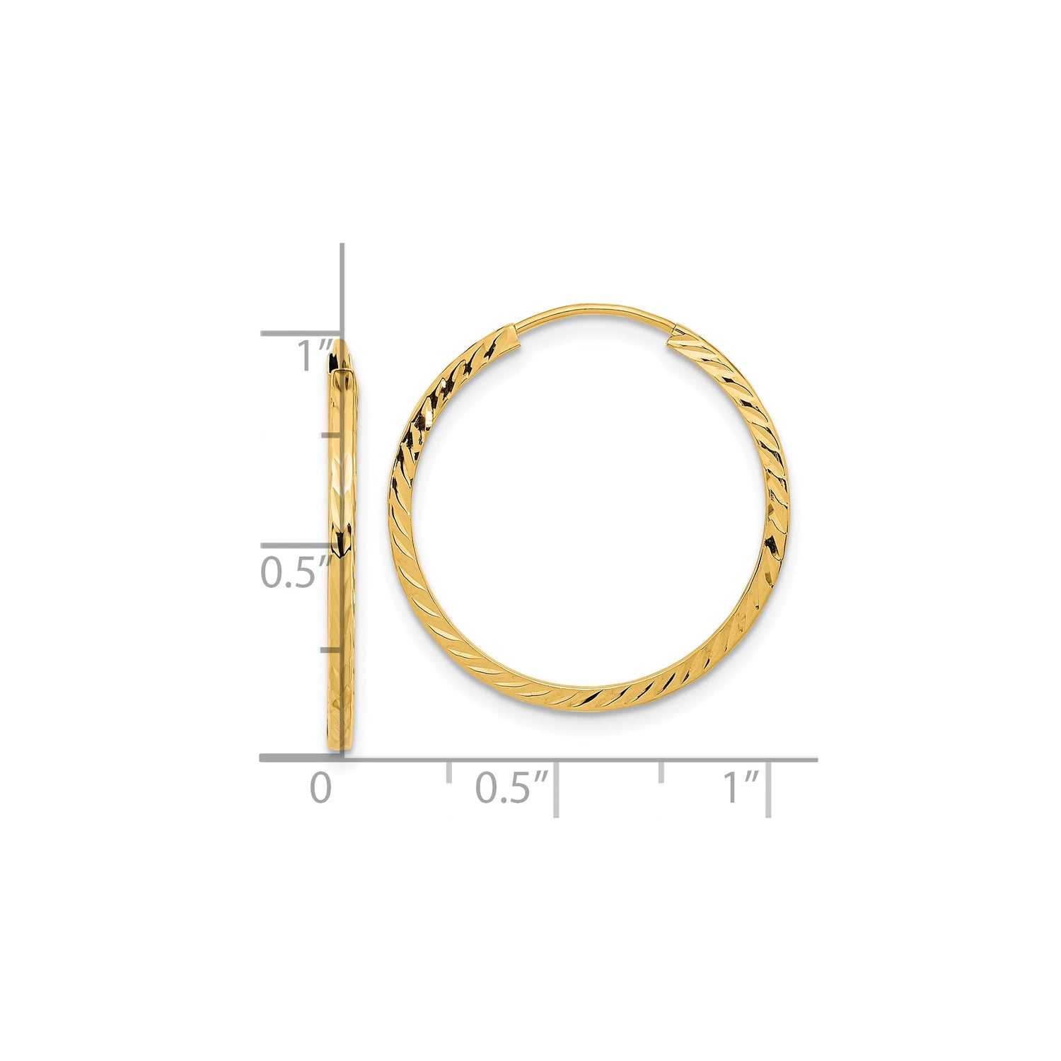 10k Yellow Gold Hoop Earrings, Polished Twisted Diamond Cut Endless Design for Women