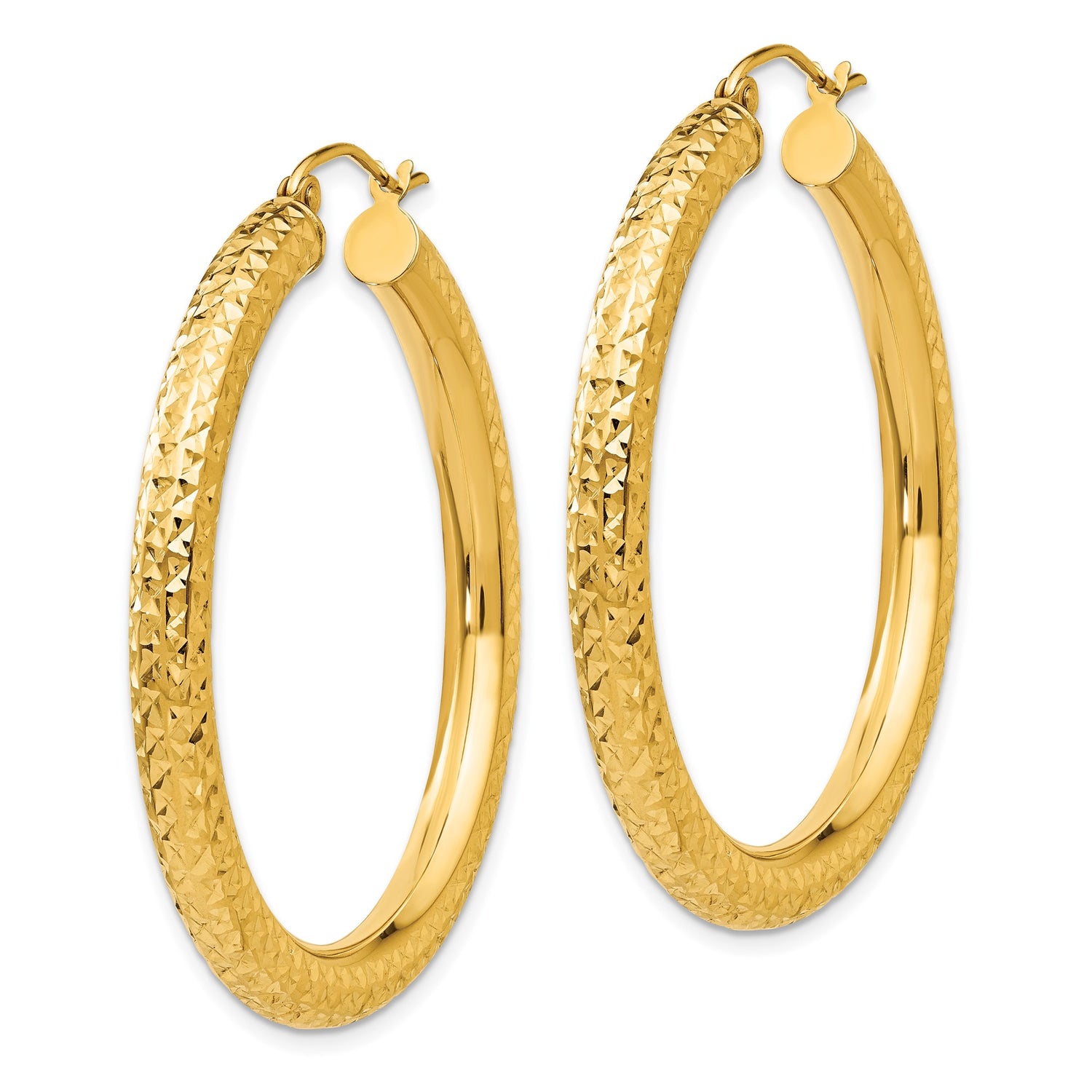 10k Yellow Gold Hoop Earrings, Textured Diamond Cut Design, Latch Back, Lightweight Round Style for Women