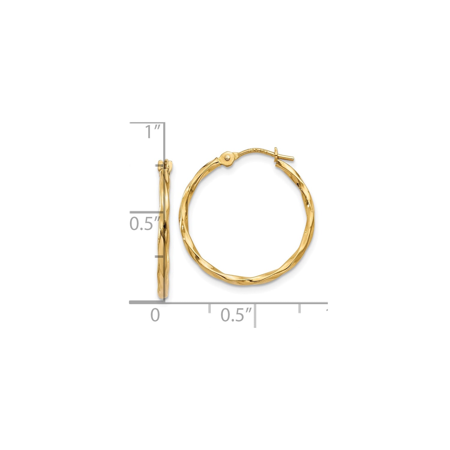 10k Yellow Gold Hoop Earrings, Twisted Design, Polished Lightweight Style for Women