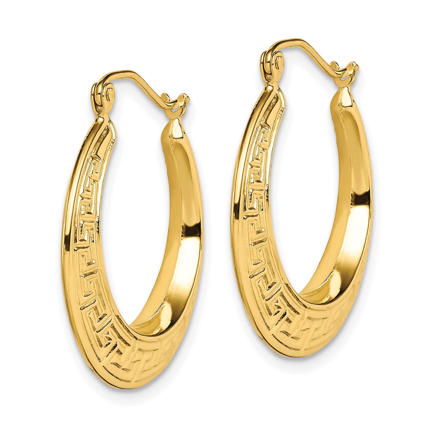10k Yellow Gold Hoop Earrings with Greek Key Design, Polished Meander Pattern Jewelry