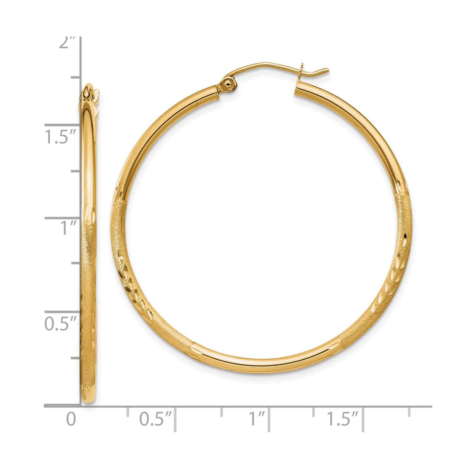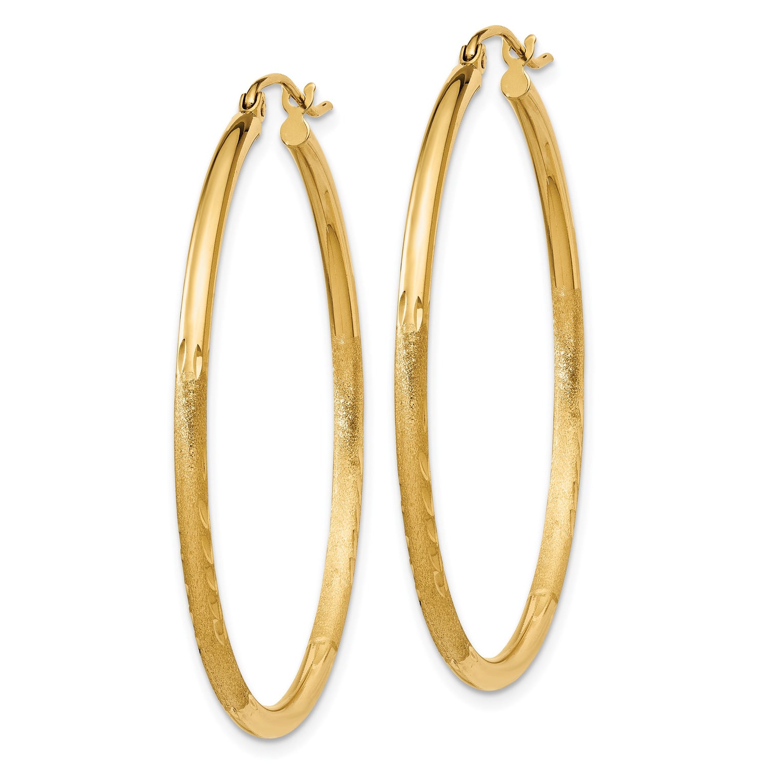 Crafted As Lightweight Everyday Gold Hoops, These Elegant Pieces Reside In That Perfect Sweet Spot Between Statement And Subtlety. The Satin Finish Gold Hoops Offer Soft Elegance While The Etched Texture Hoop Earrings Provide A Touch Of Artistry That Elevates The Look. Perfect As Fashion Gold Hoops Or As A Timeless Addition To Any Gold Jewelry Collection, These Ladies Hoop Earrings Bring Out The Best In Classic Women's Gold Hoops. Choose These Daily Earrings To Embrace Understated Charm With Lasting Appeal.