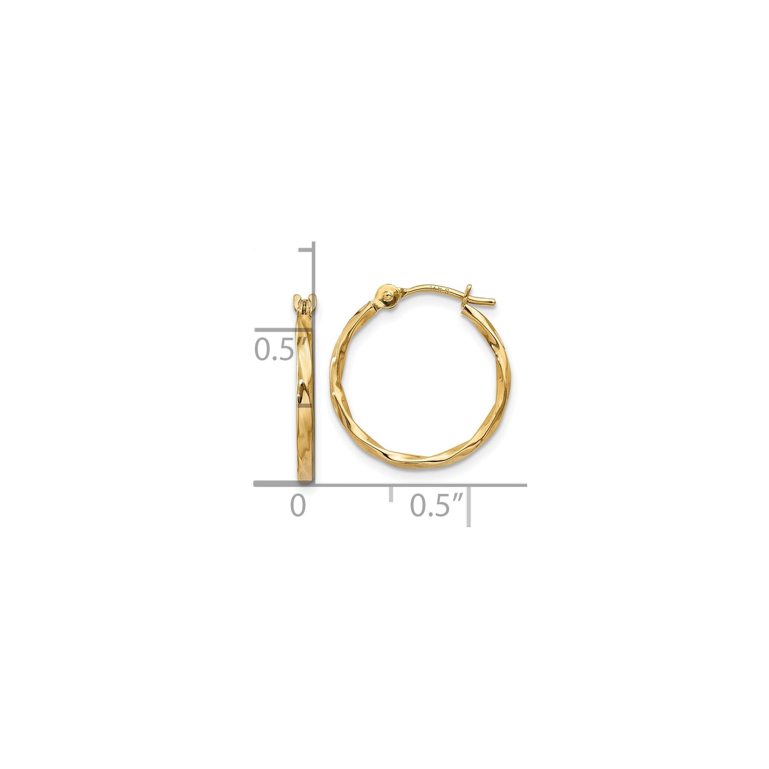 10k Yellow Gold Twisted Hoop Earrings, Polished Finish, Latch Back, Minimalist Style for Women