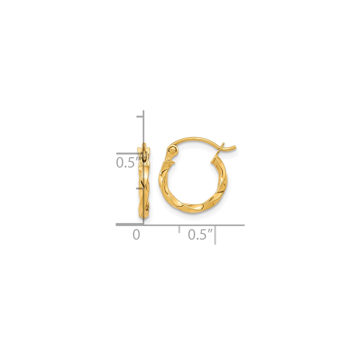 10k Yellow Gold Twisted Hoop Earrings, Small Braided Polished Lightweight Design for Women