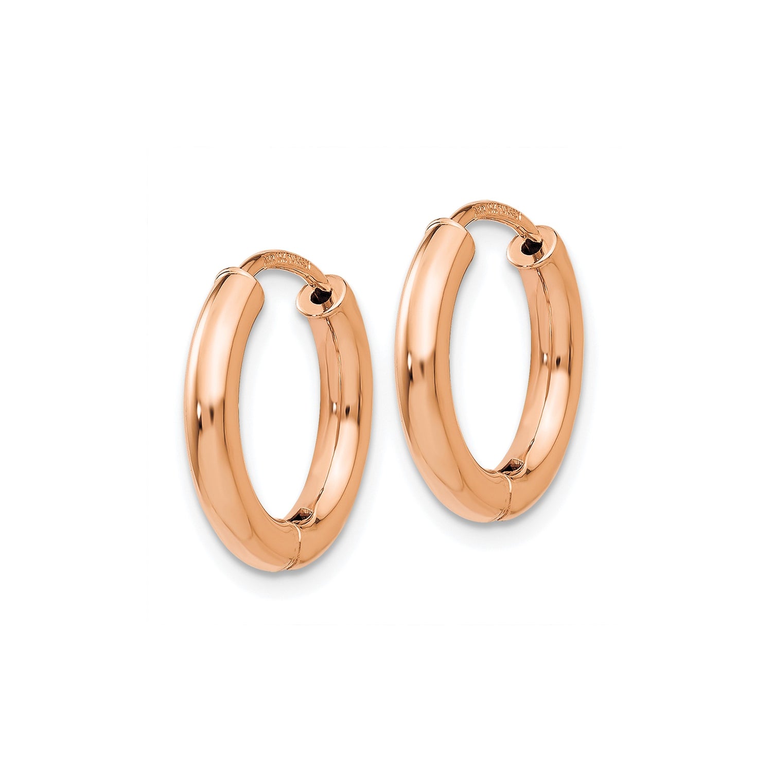 14k Rose Gold Hoop Earrings, Classic Round Polished Design, Minimalist Lightweight Jewelry