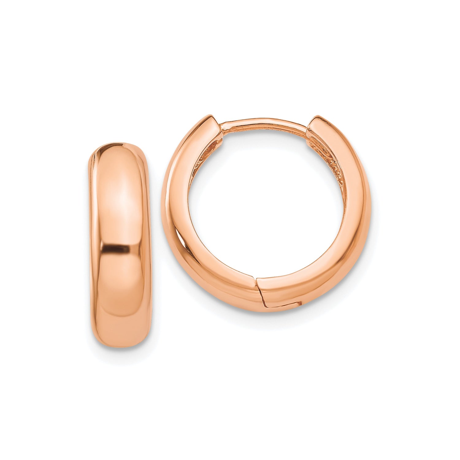 14k Rose Gold Hoop Earrings, Small Polished Hinged Hoops, Minimalist Lightweight Jewelry for Women