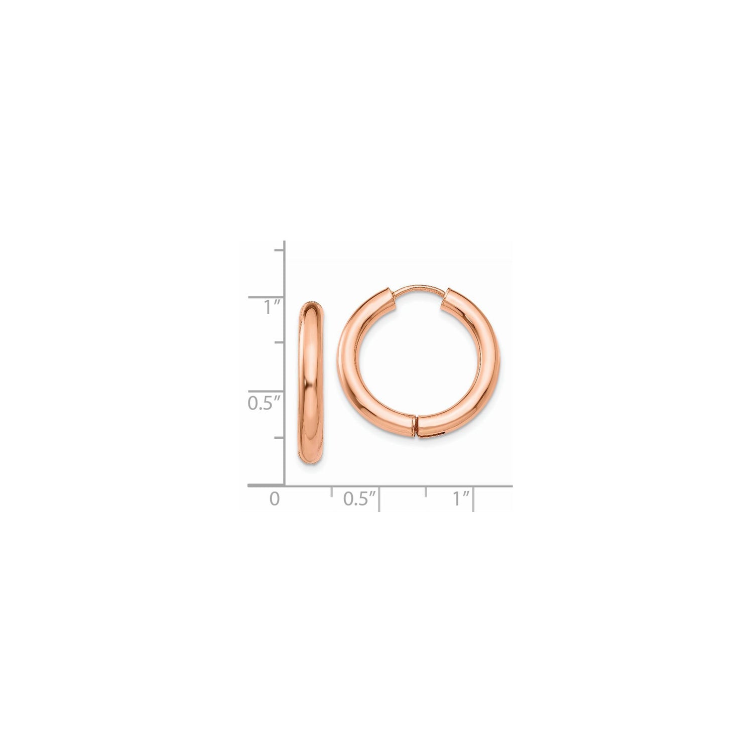 14k Rose Gold Hoop Earrings, Smooth Polished Minimalist Round Design for Women