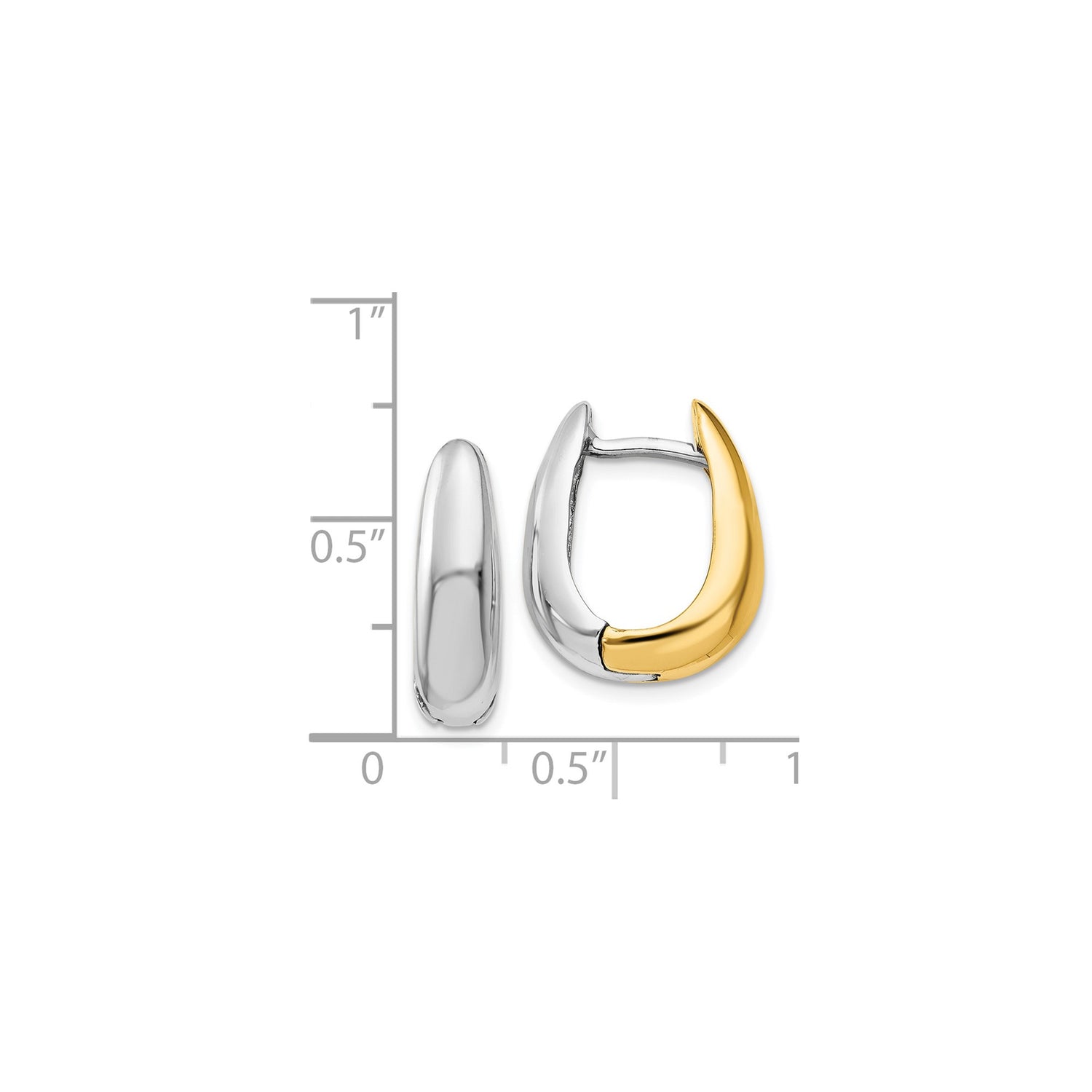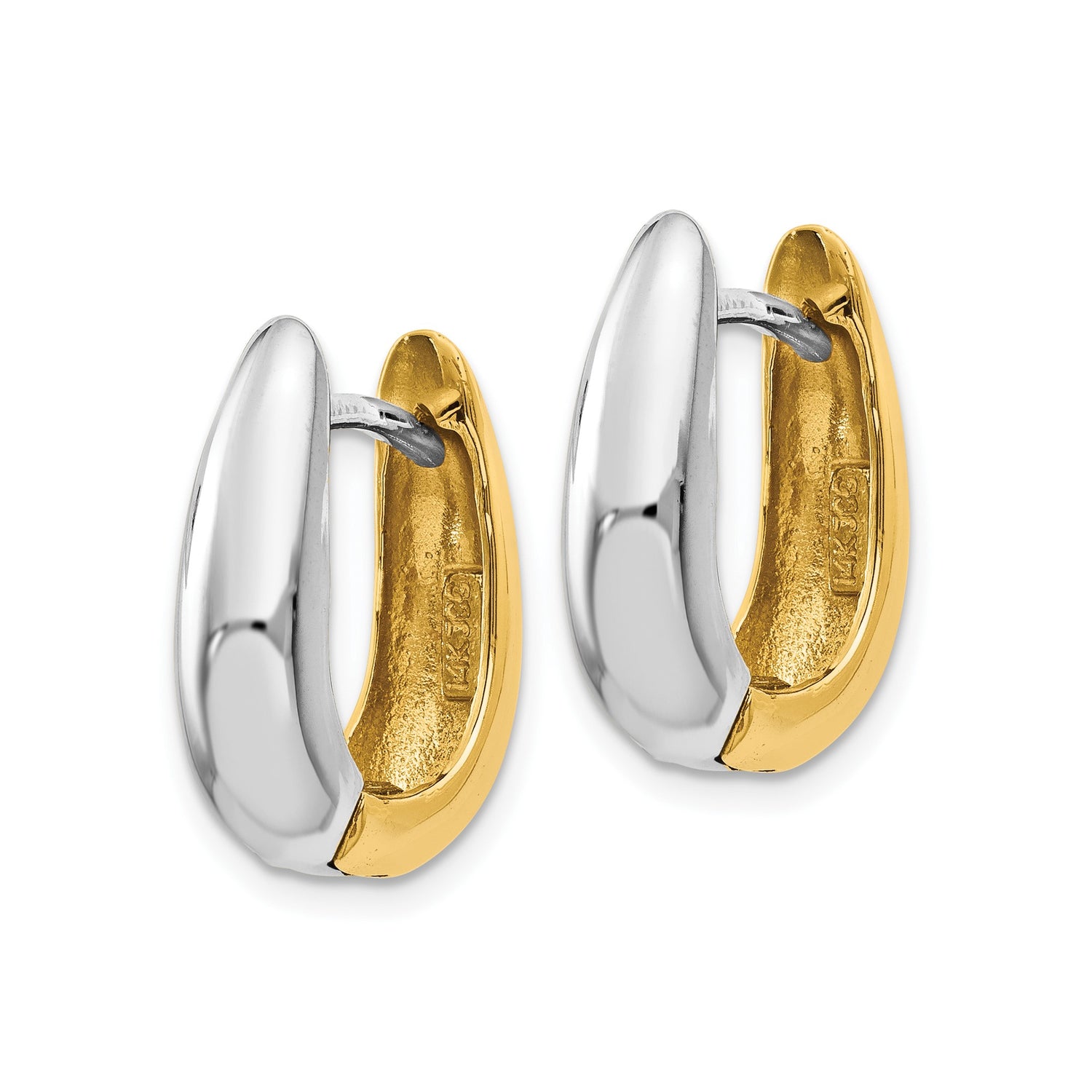 14k Two-Tone Gold Hoop Earrings, Polished Finish, Huggie Style for Men