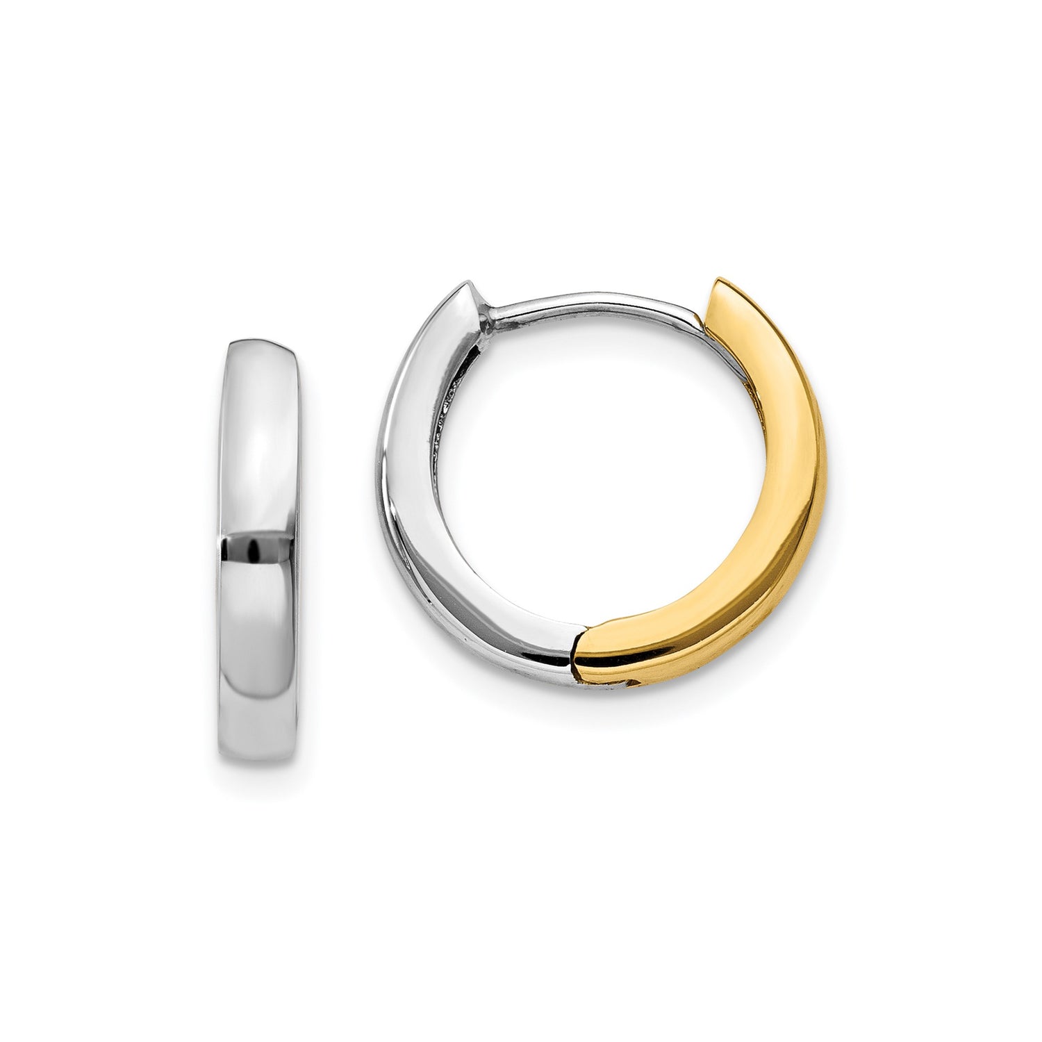 14k Two-Tone Gold Hoop Earrings, White and Yellow Gold, Polished Minimalist Design