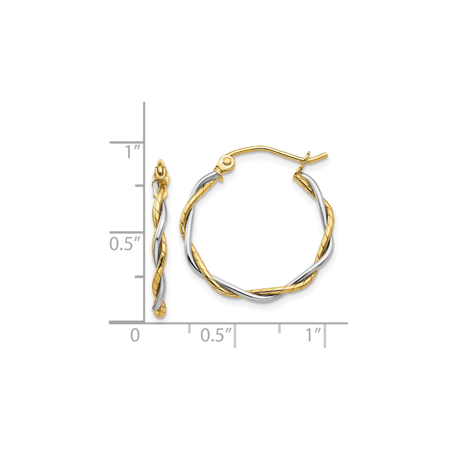 14k Two-Tone Gold Twisted Hoop Earrings, Braided Yellow and White Gold Design for Women