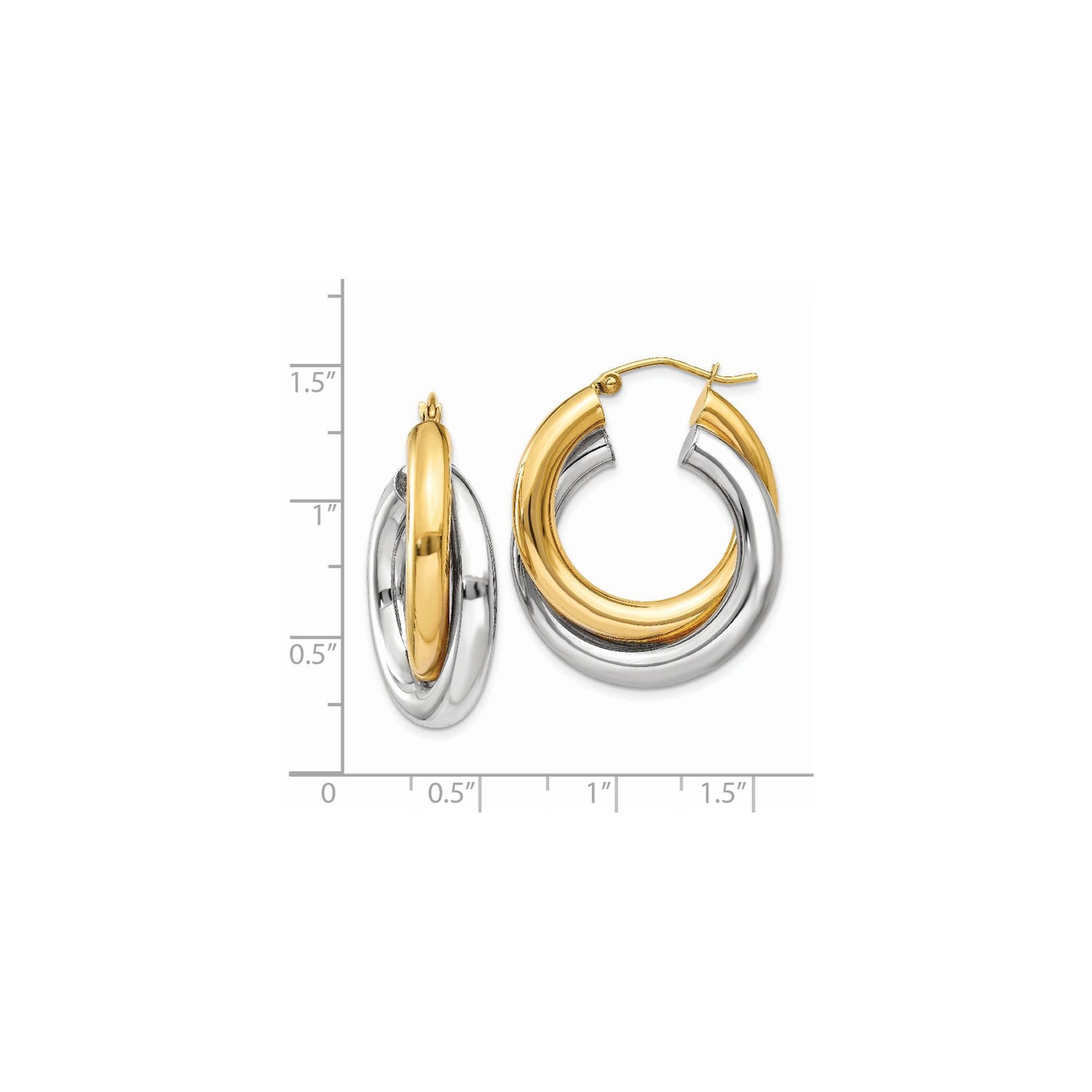 14k Two-Tone Yellow and White Gold Hoop Earrings with Intertwined Polished Loops