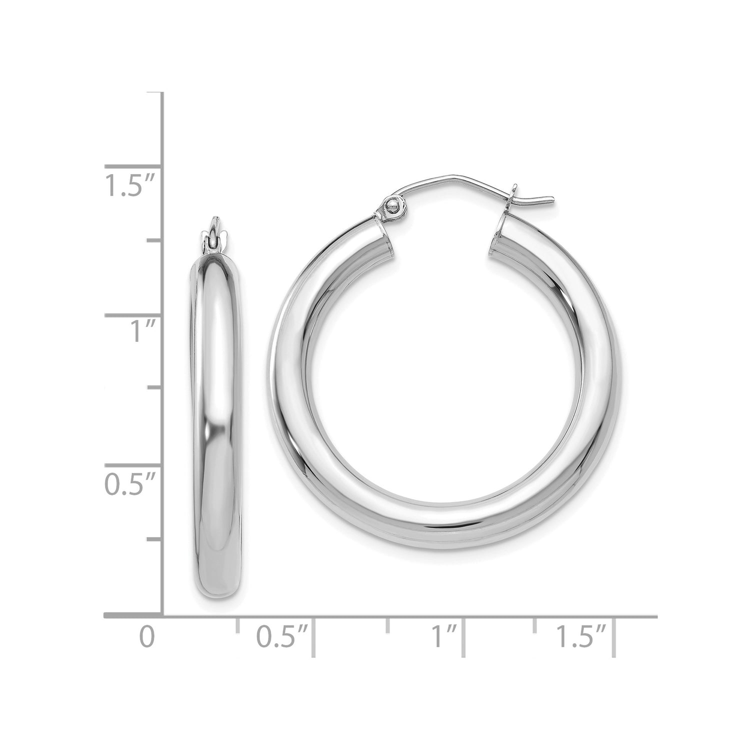 14k White Gold Hoop Earrings, Classic Round Polished Design, Lightweight Minimalist Style