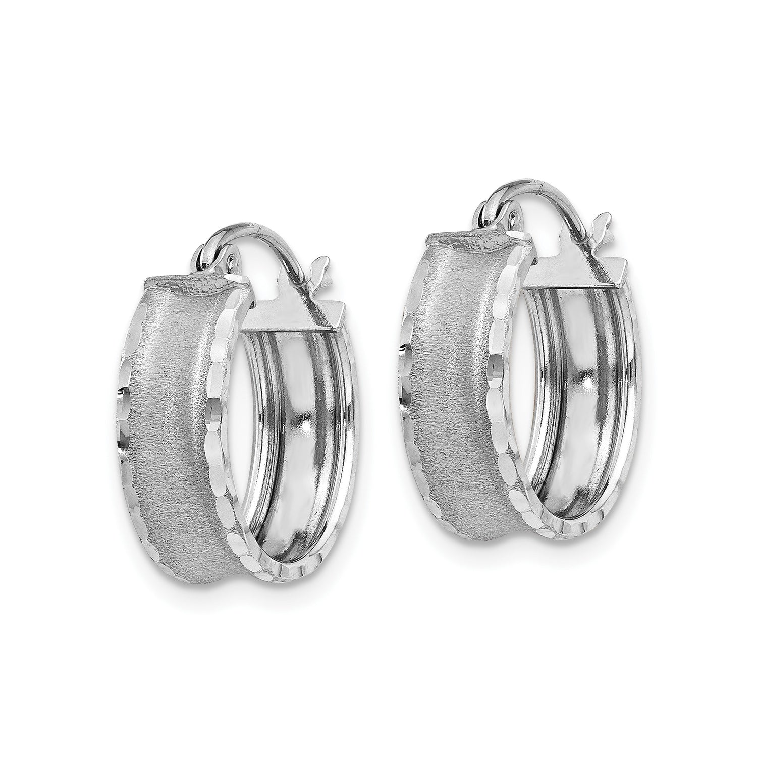 14k White Gold Hoop Earrings with Textured Matte Finish and Diamond Cut Edges