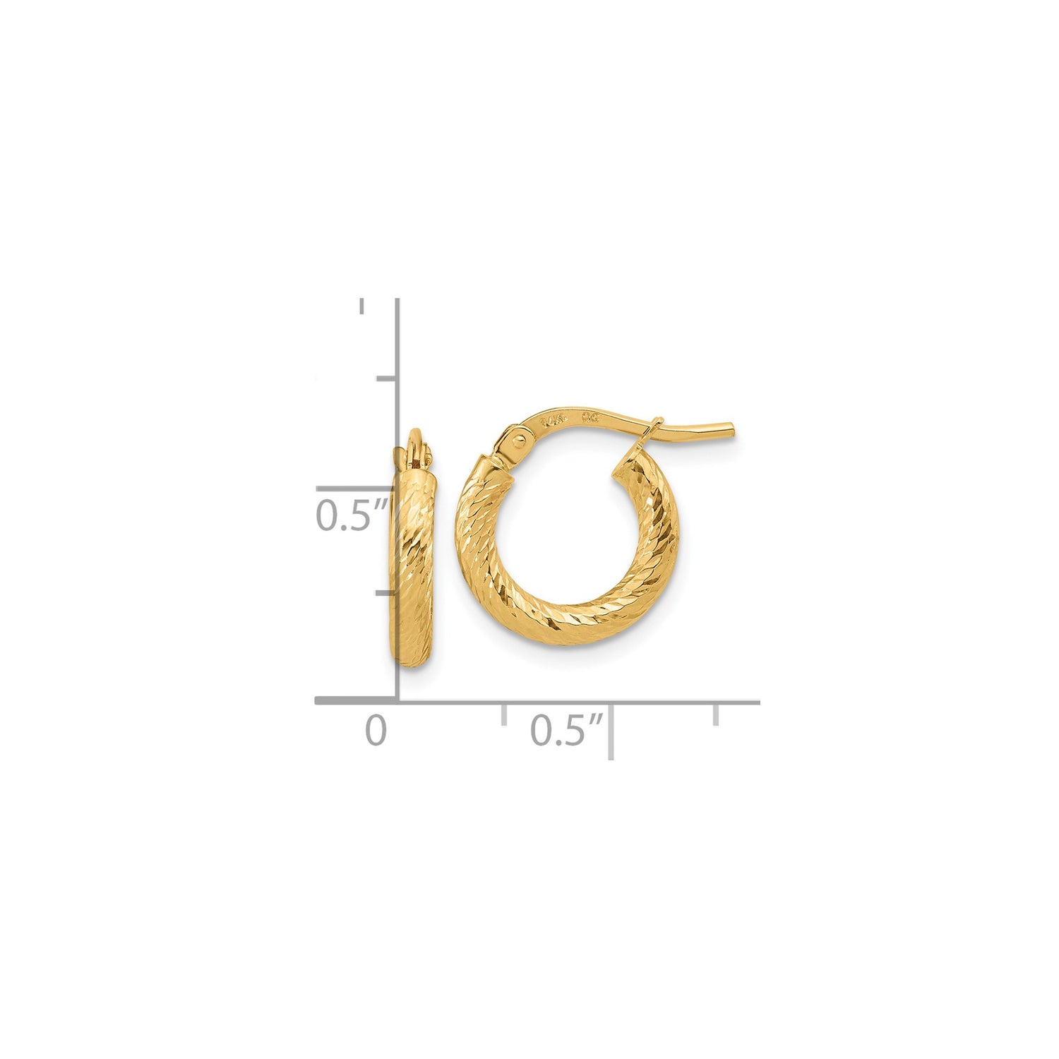 14k Yellow Gold Hoop Earrings, Diamond-Cut Textured Finish, Lightweight Classic Design for Women