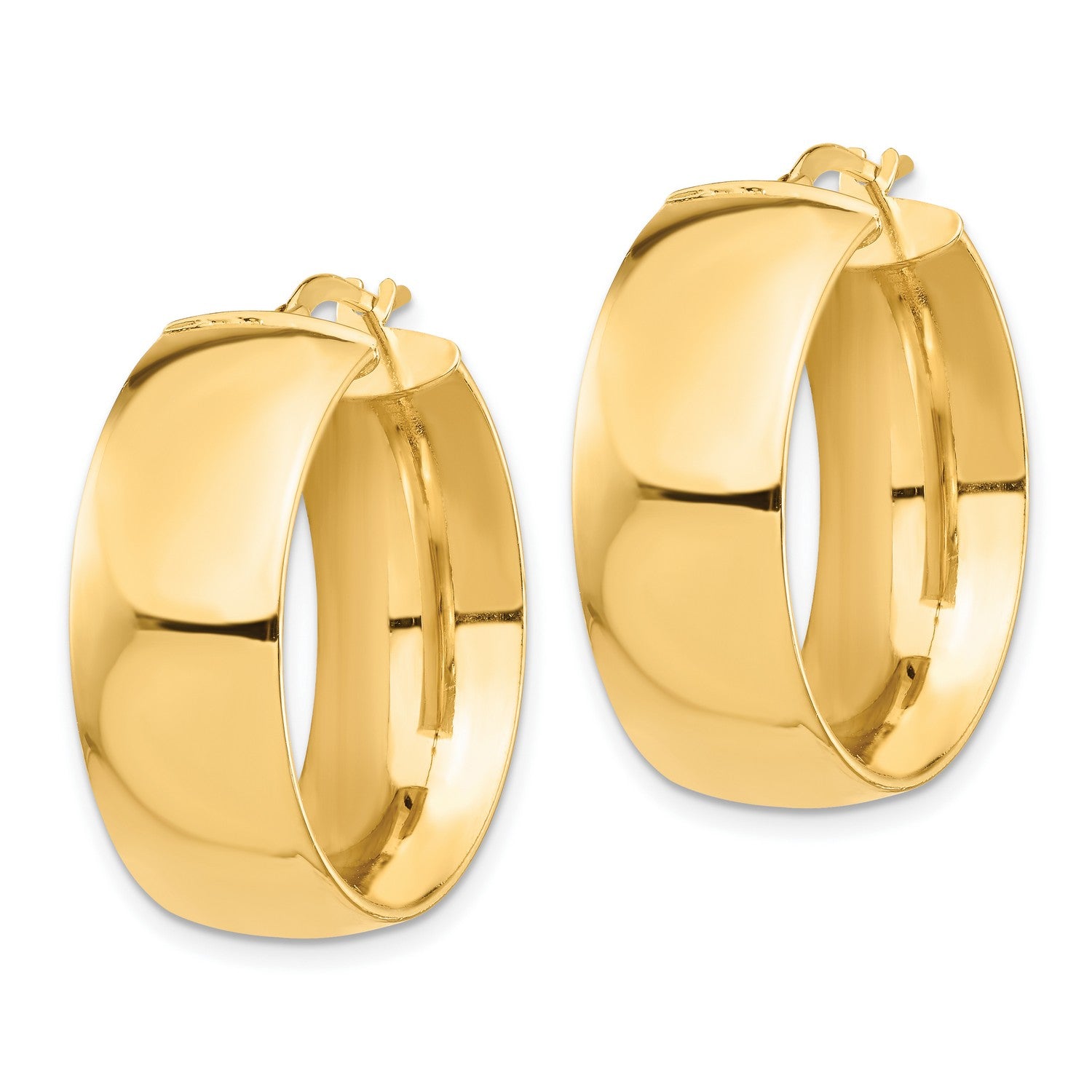 14k Yellow Gold Hoop Earrings, High-Polish Wide Hoops with Hinged Closure, Minimalist Design for Women