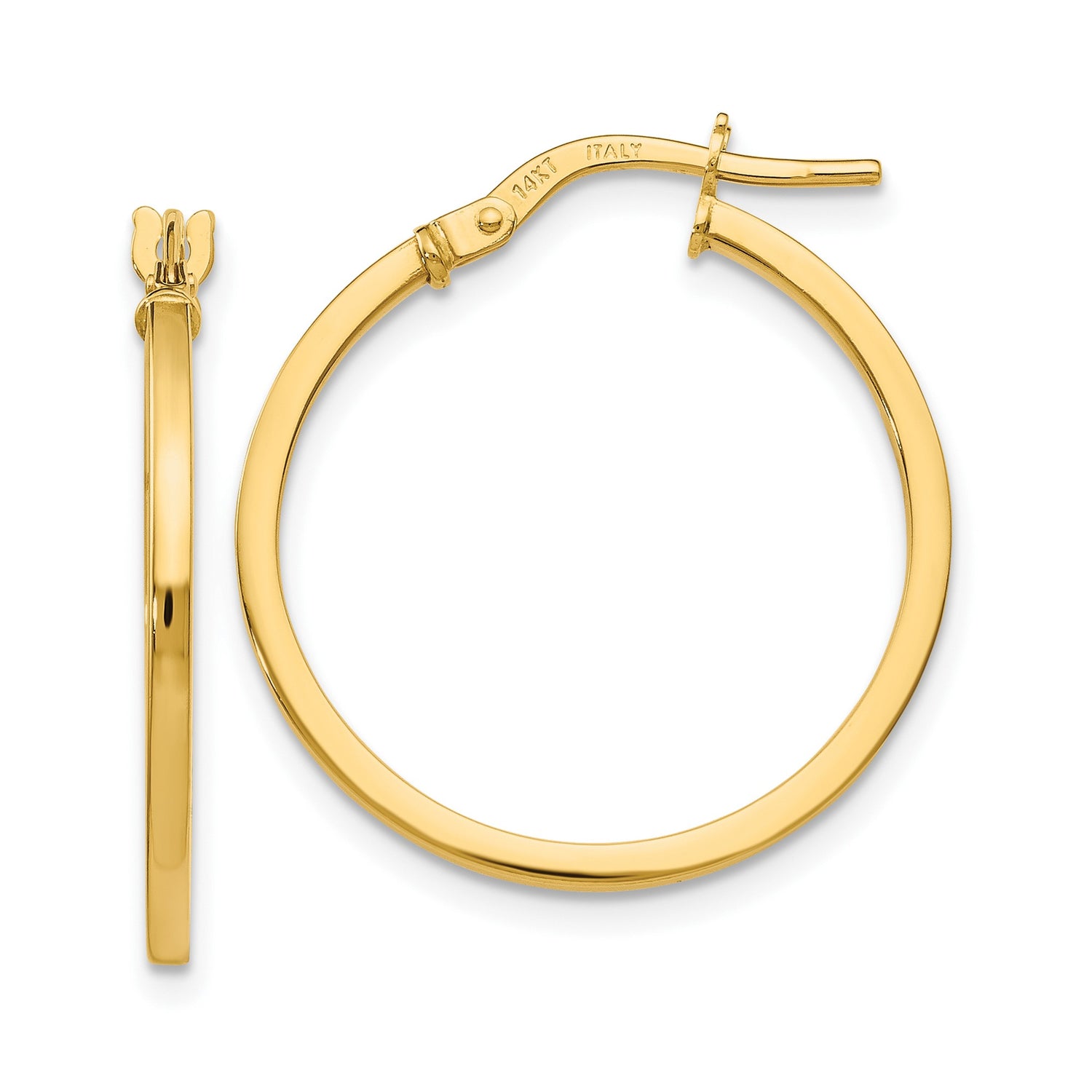 14k Yellow Gold Hoop Earrings, Italian Made Polished Lightweight Circle Design for Women