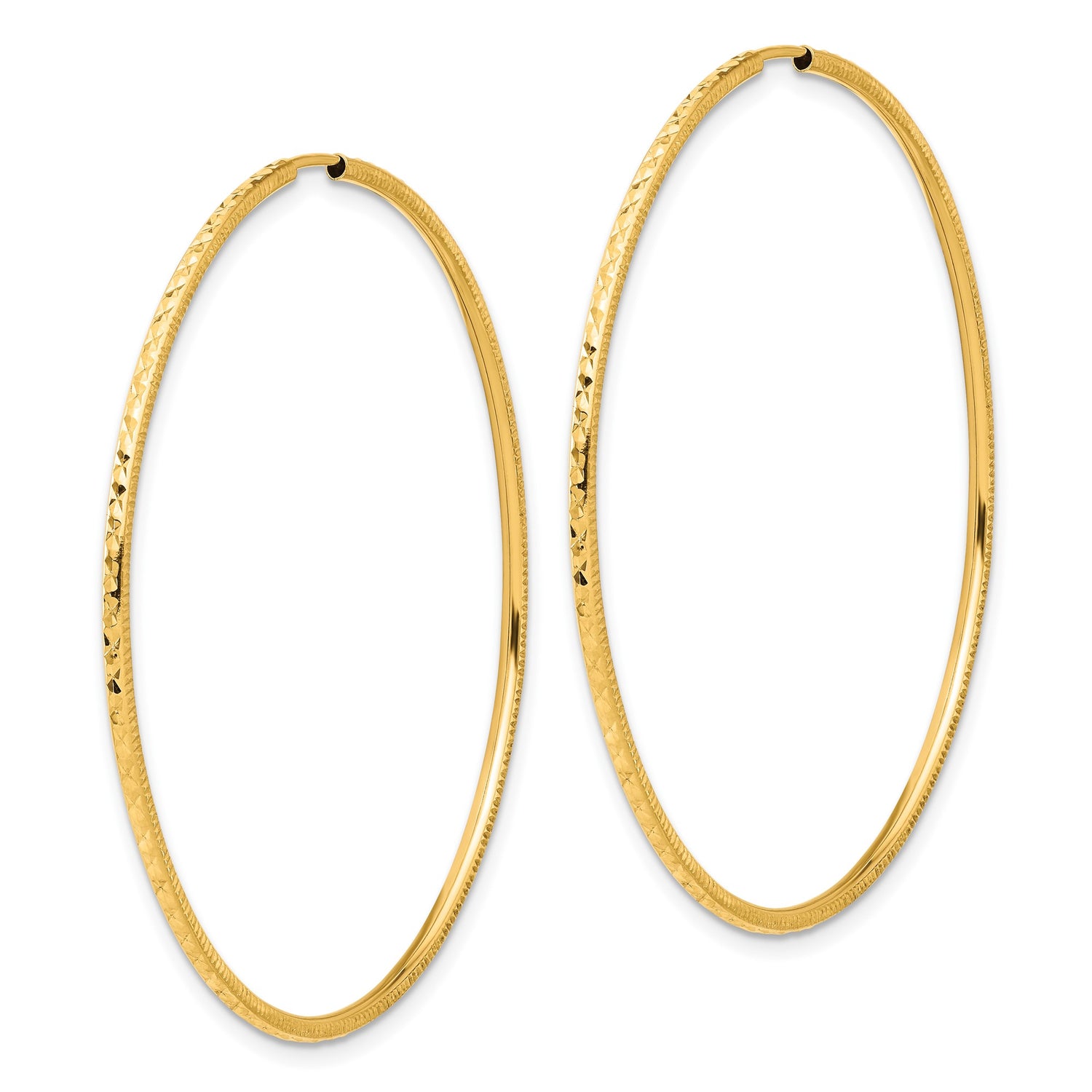 14k Yellow Gold Hoop Earrings, Large Textured Diamond Cut Endless Hoops for Women