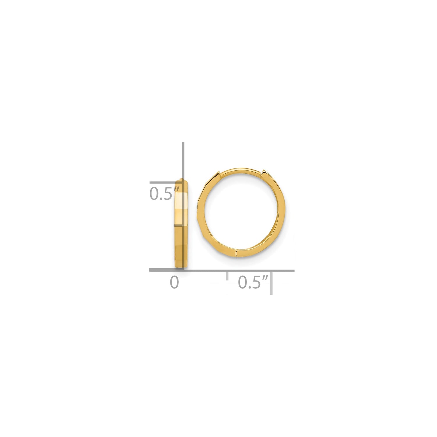 Add a Touch of Modern Elegance with These 14k Yellow Gold Hoop Earrings That Blend Classic Design with Updated Style. Crafted for Comfort and Beauty, These Lightweight Faceted Gold Hoops Offer a Unique Flat-Edge That Catches the Light for a Soft, Subtle Shine. The Polished Flat Edge Hoops Reflect a Refined Look That Complements Both Minimalist and Statement Outfits Alike.