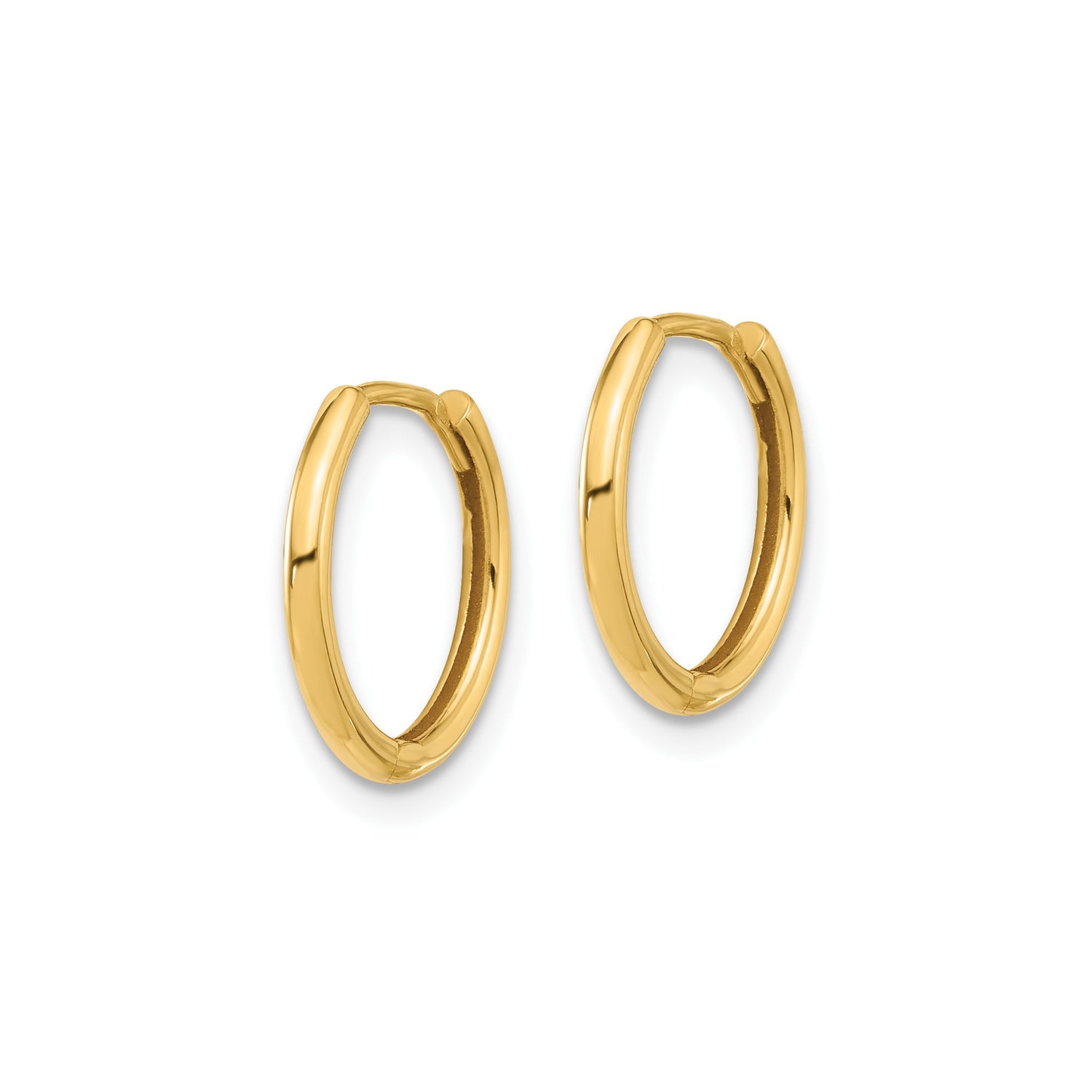 Meticulously crafted to meet the standards of refined gold jewelry, each pair showcases the brilliance of yellow gold while maintaining a comfortable, low profile for day-to-night wear. The hinged hoops provide secure closure, while the rounded shape and sleek profile highlight their status as versatile gold hoop earrings for any occasion. Whether you're pairing them with other gold jewelry or wearing them solo, these earrings exemplify modern simplicity.