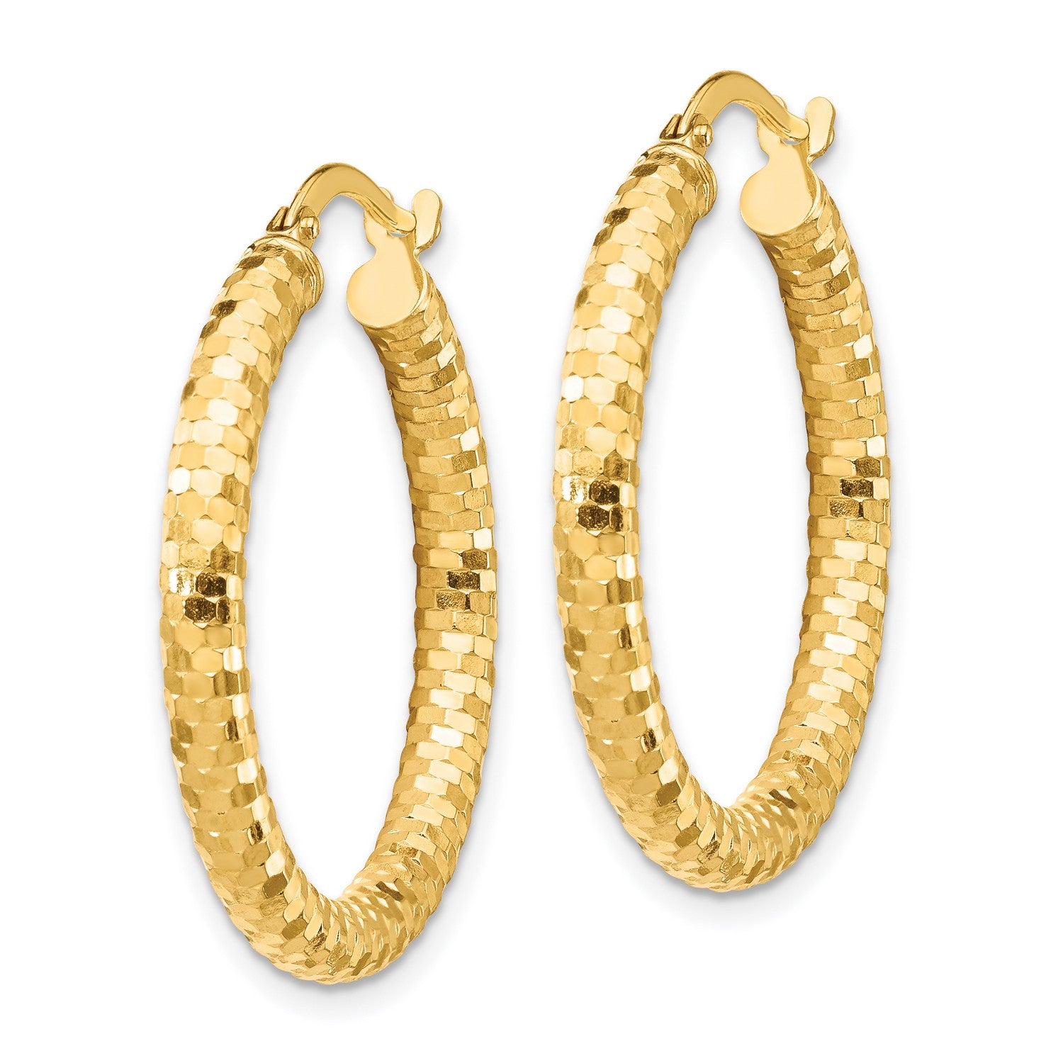 14k Yellow Gold Hoop Earrings, Textured Diamond-Cut Round Hoops with Polished Finish