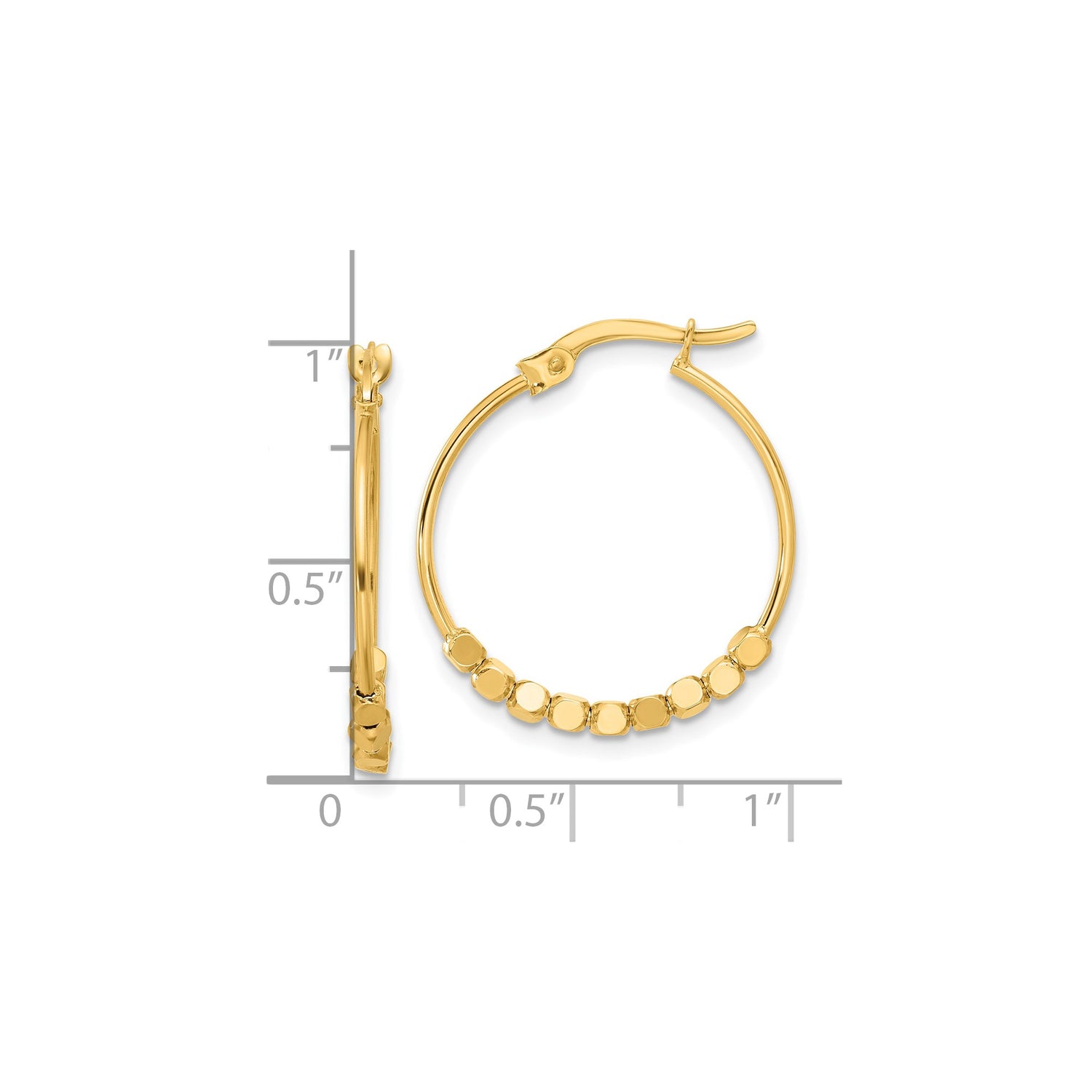 14k Yellow Gold Hoop Earrings with Polished Finish and Square Bead Accents