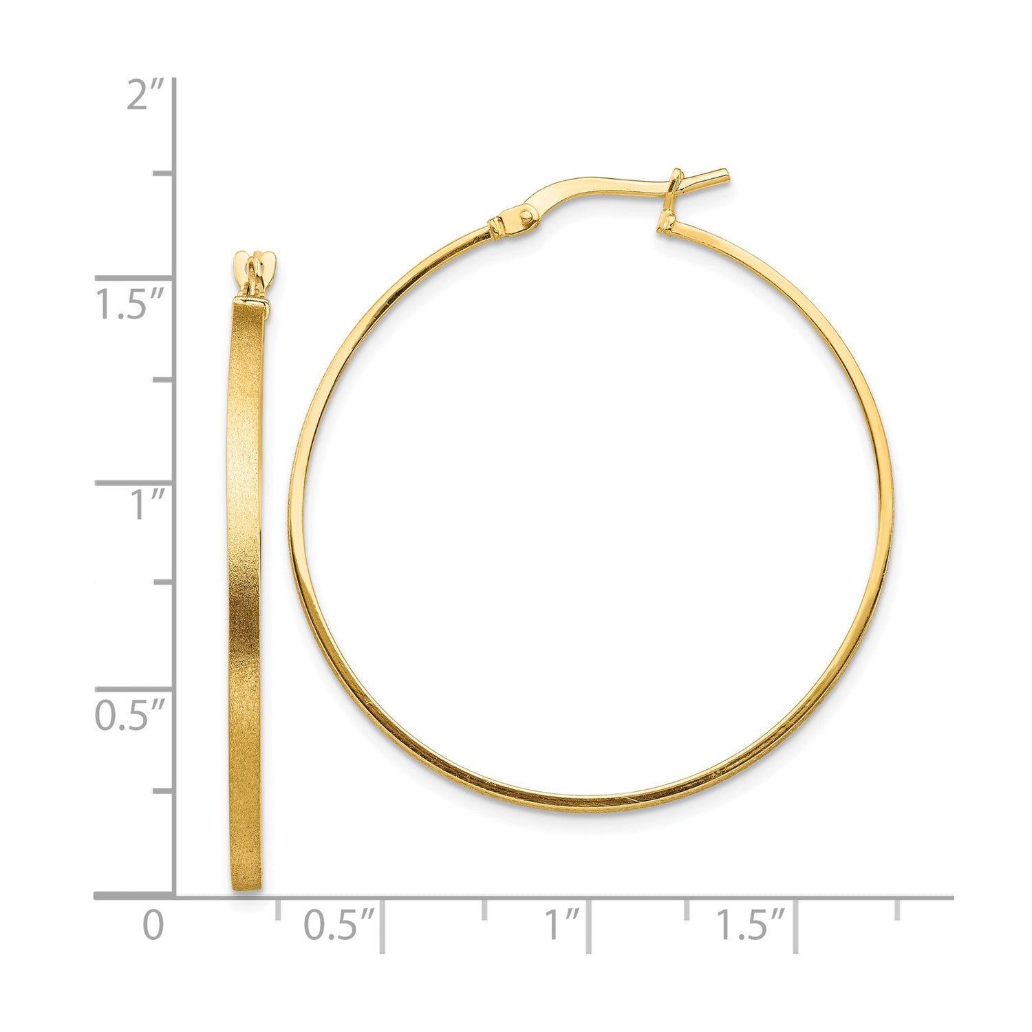 14k Yellow Gold Hoop Earrings with Satin Finish Edge and High Polish Side