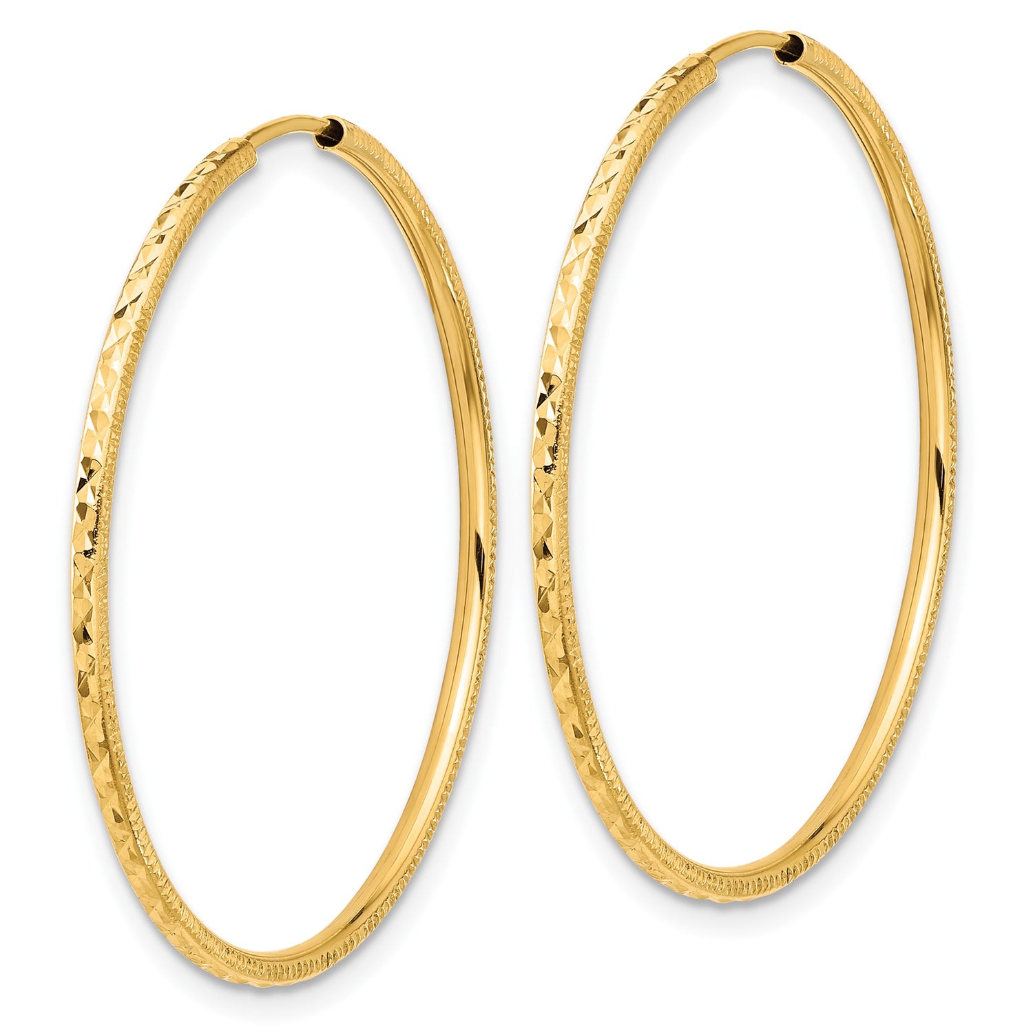 14k Yellow Gold Hoop Earrings with Textured Diamond Cut Design, Large Lightweight Style