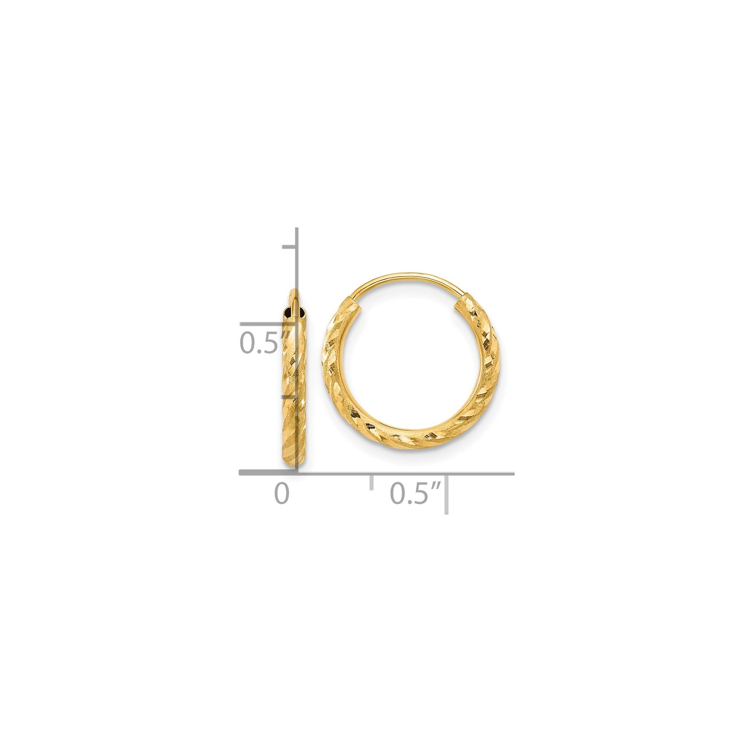 14k Yellow Gold Hoop Earrings with Twisted Diamond Cut Texture, Endless Lightweight Design